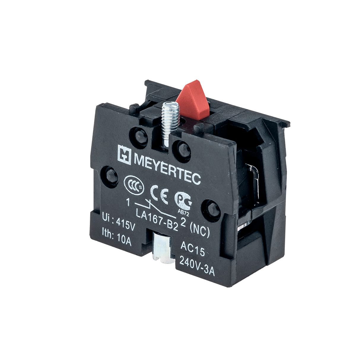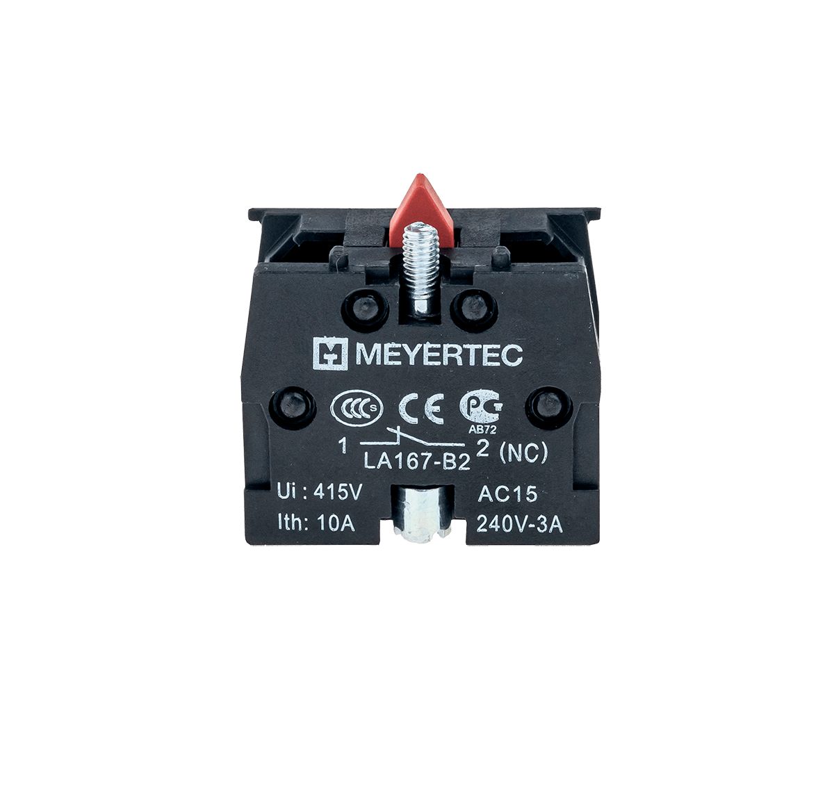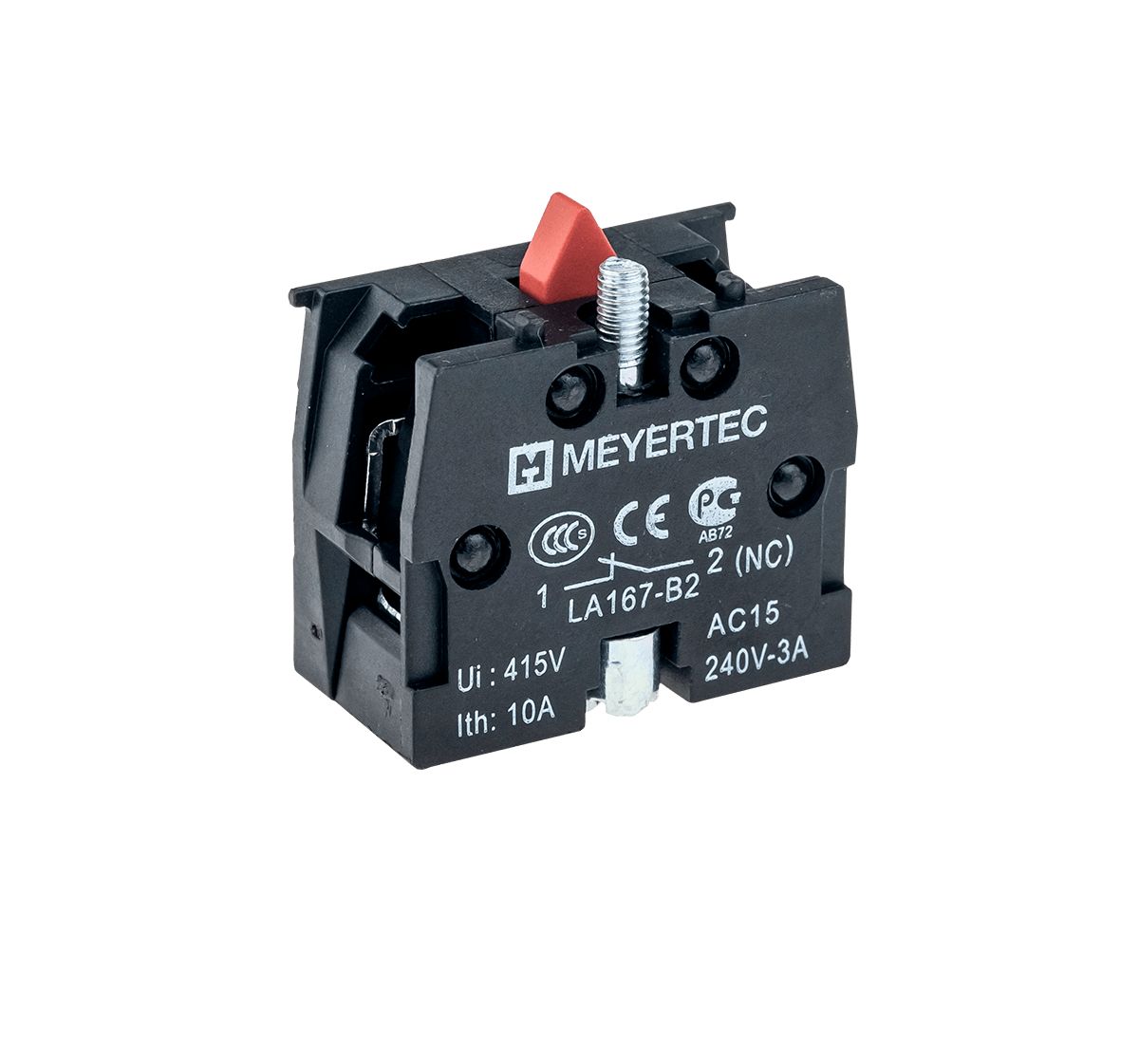 Дополнительный блок-контакт MTB2-BE12 предназначен для расширения контактной группы кнопок и переключателей в модульном исполнении. Для одного устройства можно установить максимально до 6 блок-контактов. Блок-контакты не подходят для расширения контактной группы джойстиков MTB2-PA.