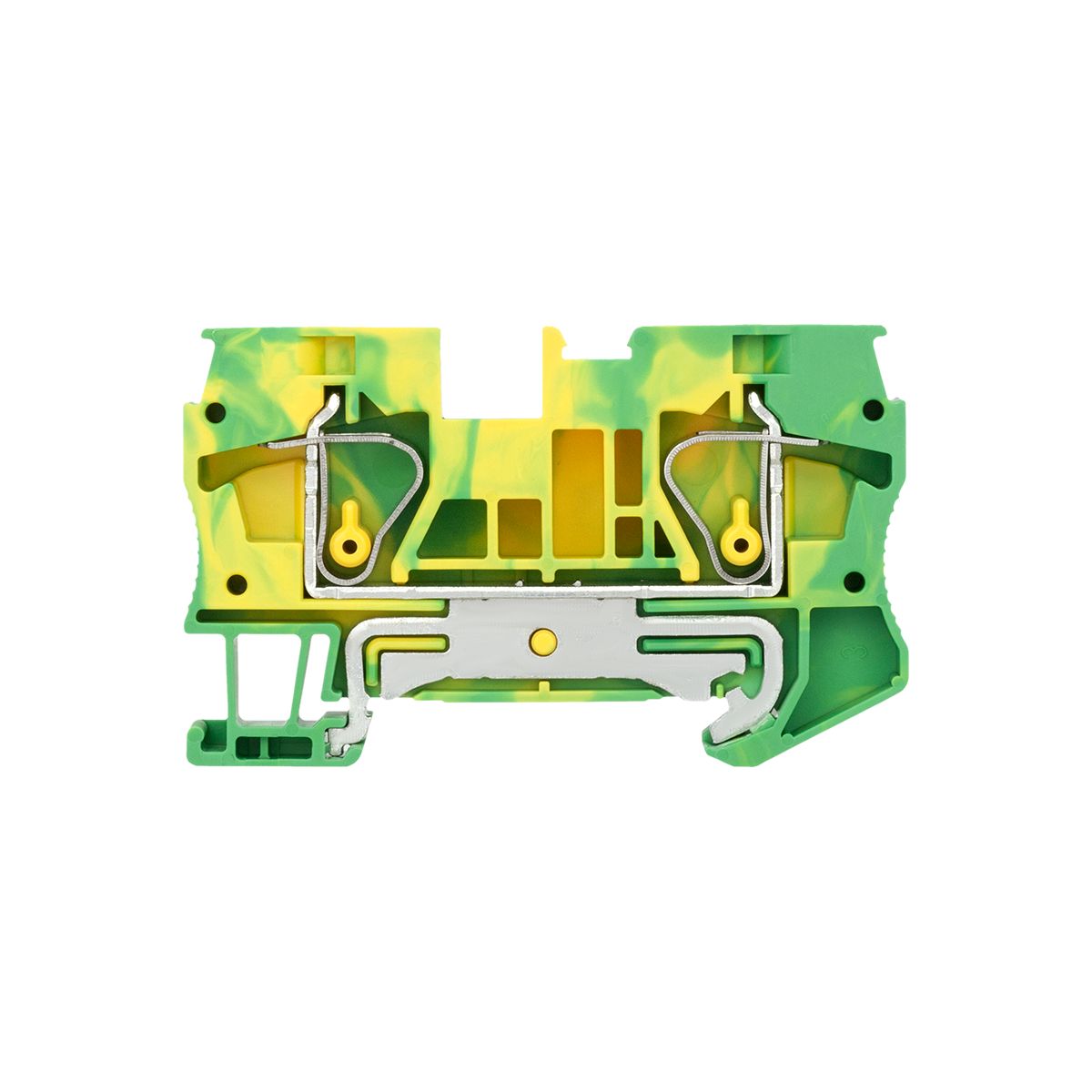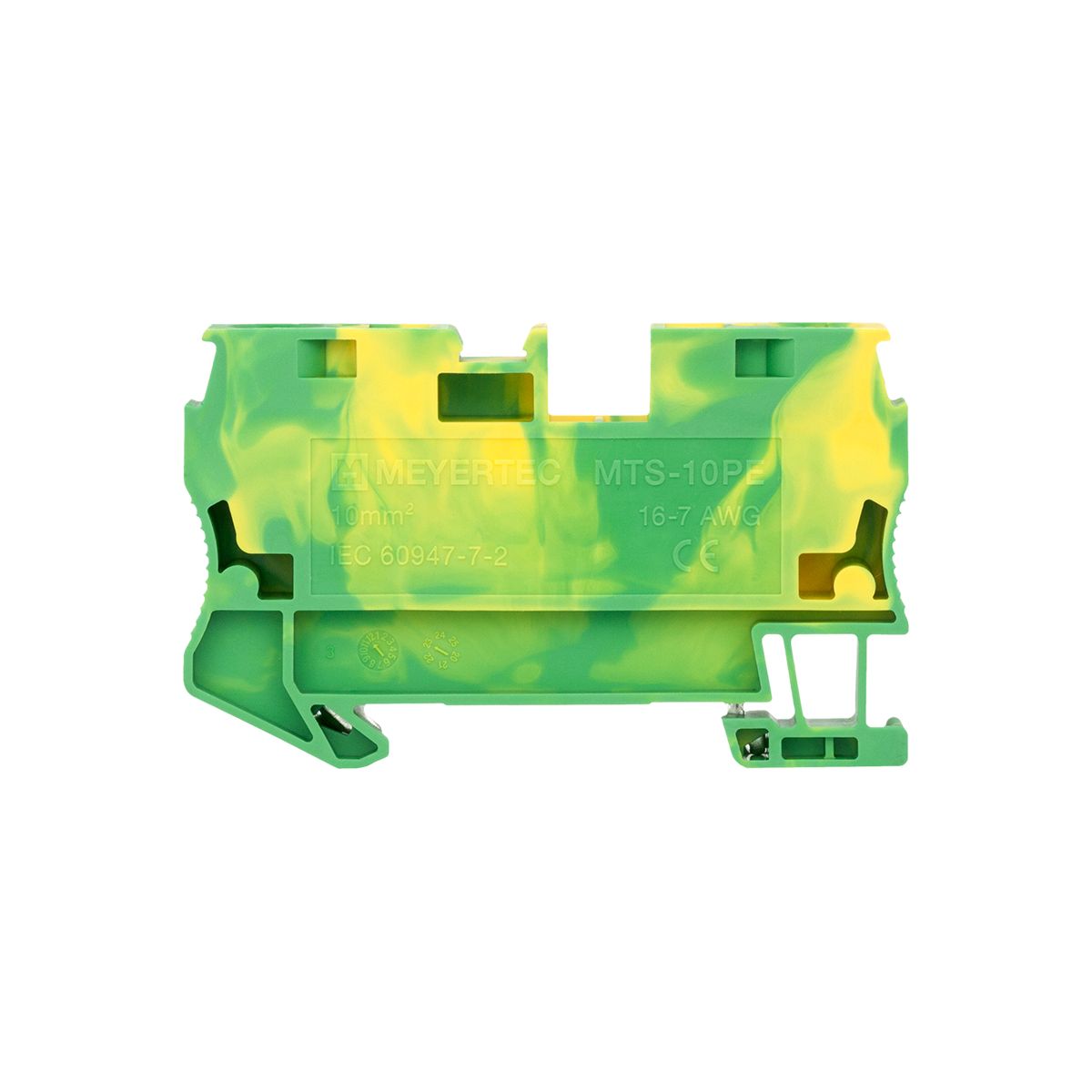 Заземляющие пружинные клеммы MTS-10PE применяются для подключения защитных заземляющих проводников. Клемма фиксируется на DIN-рейке простым защелкиванием без использования инструментов.