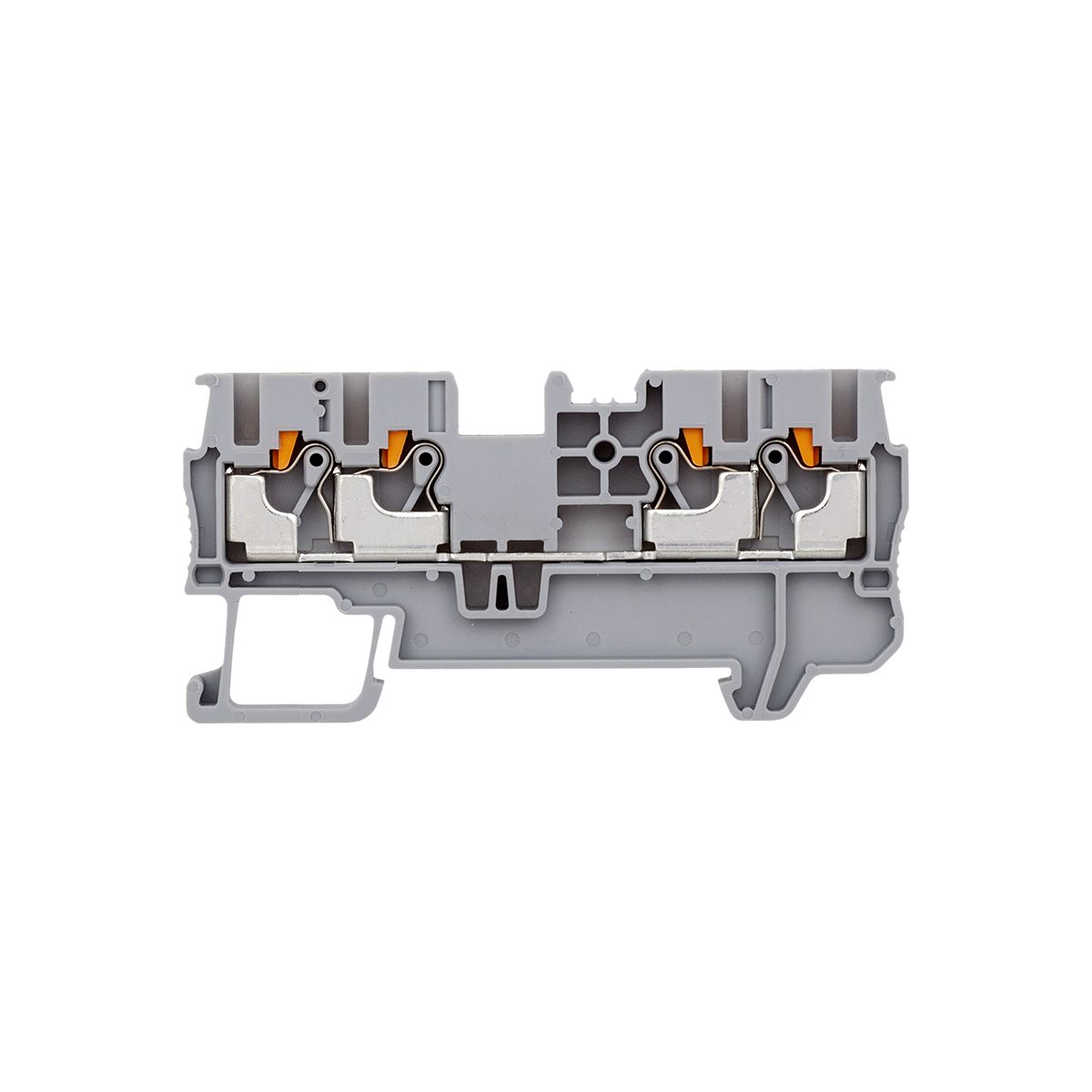 Четырехпроводные push-in клеммы MTP-FO2.5 применяются для разветвления токовых цепей. В отличие от многоуровневых клемм данные клеммы имеют единую токопроводящую шину на 4 присоединения.