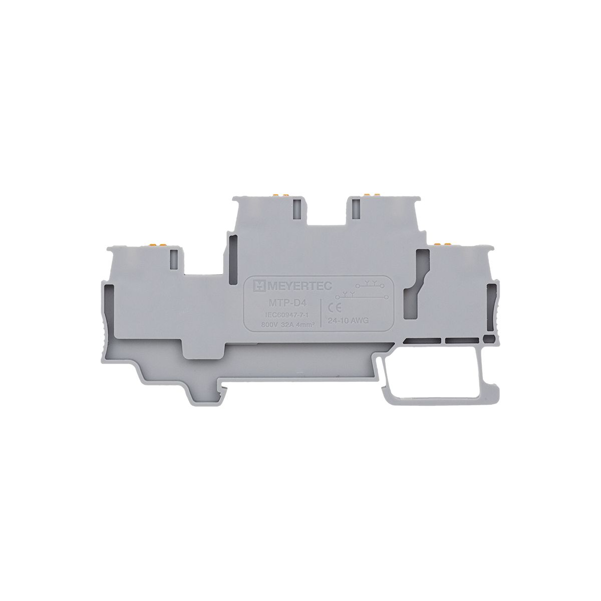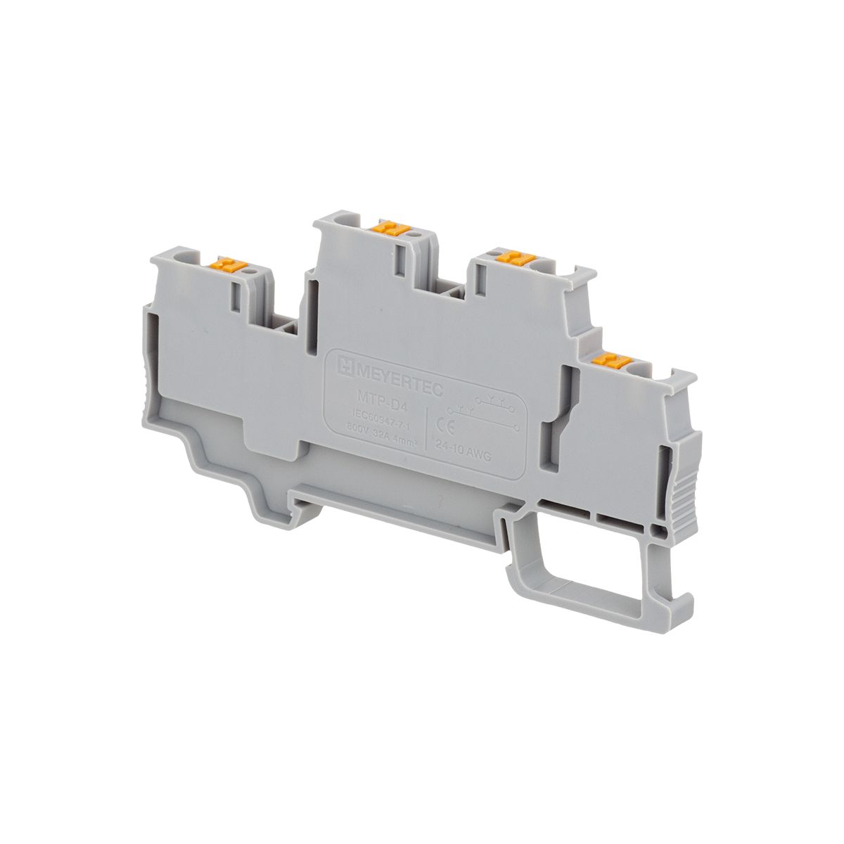 Клеммы MTP-D4 применяются в шкафах автоматики с высокой плотностью монтажа для экономии места на DIN-рейке. Оба уровня имеют монтажное отверстие для установки перемычек.