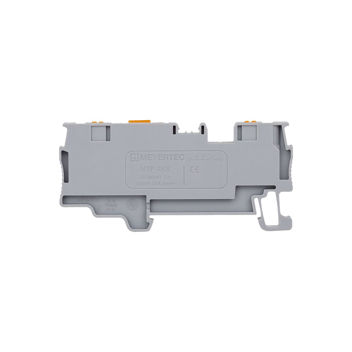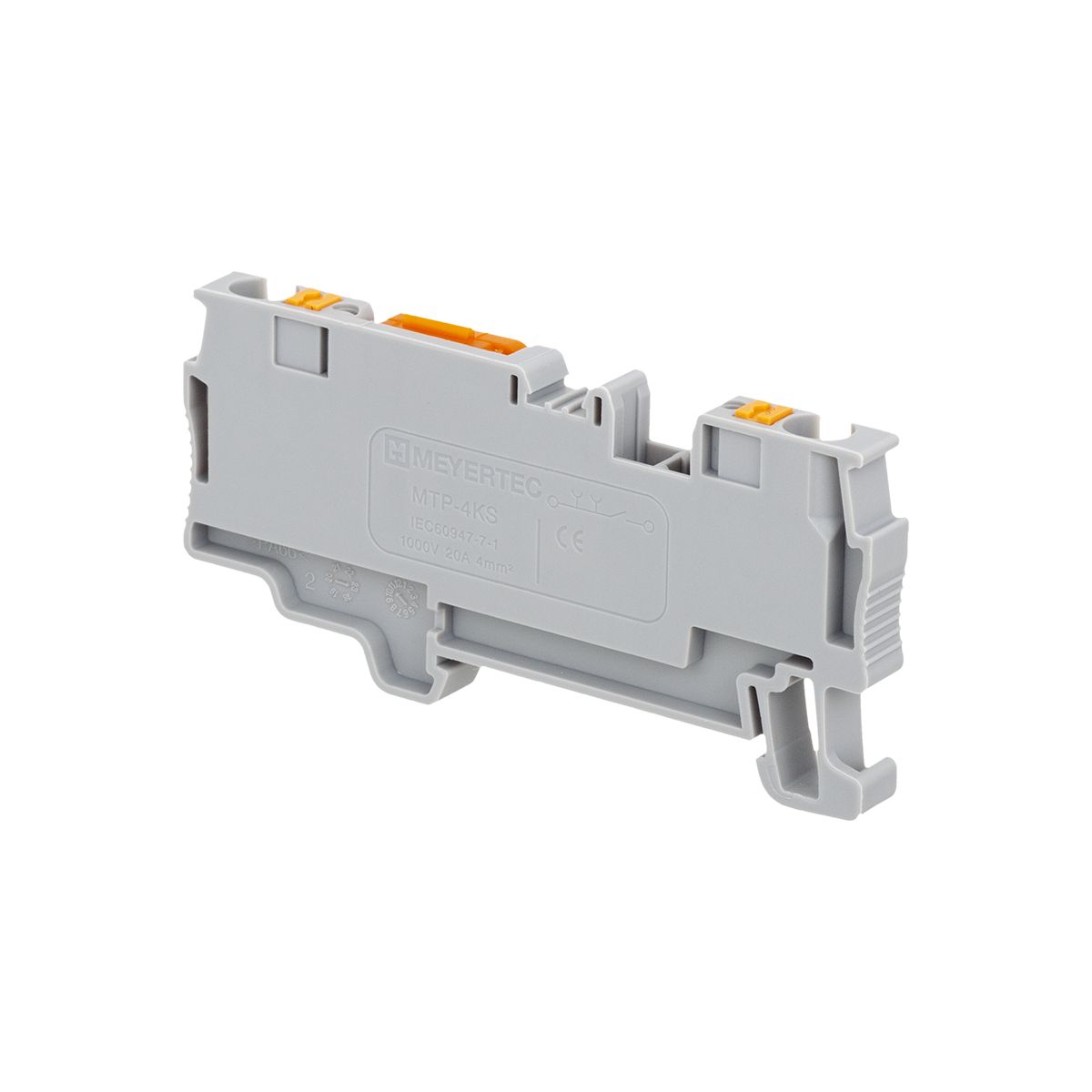 Клеммы push-in MTP-4KS с ножевым размыкателем применяются в цепях для оперативного и безопасного отключения нагрузки во время отладки или измерений. Не требуется отключение проводников, достаточно поднять рычаг размыкателя.