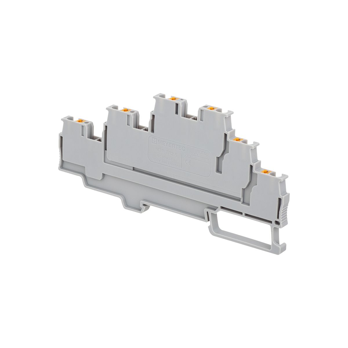 Клеммы MTP-TR2.5 применяются в шкафах автоматики с высокой плотностью монтажа для экономии места на DIN-рейке. Каждый уровень имеет монтажное отверстие для установки перемычек.