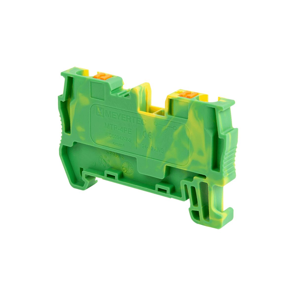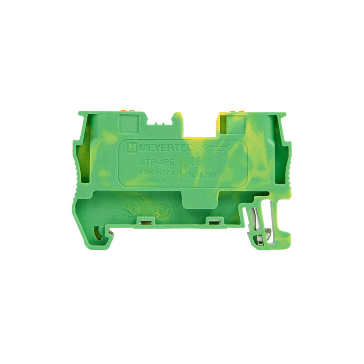 Клеммы push-in «Земля» MTP-4PE применяются для подключения защитных заземляющих проводников. Клемма фиксируется на DIN-рейке простым защелкиванием без использования инструментов.
