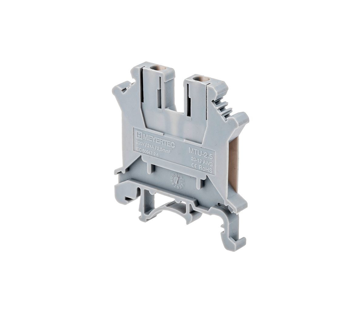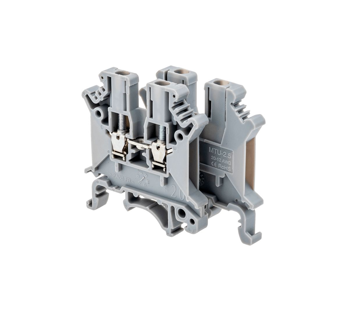 Одноуровневые винтовые клеммы MTU-2.5 – простой и удобный способ подключения устройств в шкафах автоматики. Клеммы MTU-2.5 предназначены для проводников сечением 2,5мм2. Открытую токопроводящую часть клеммного ряда необходимо закрыть торцевой заглушкой. Одноуровневые клеммы имеют одинаковые габаритные размеры для всех сечений, кроме ширины, которая зависит от сечения выбираемого проводника.
