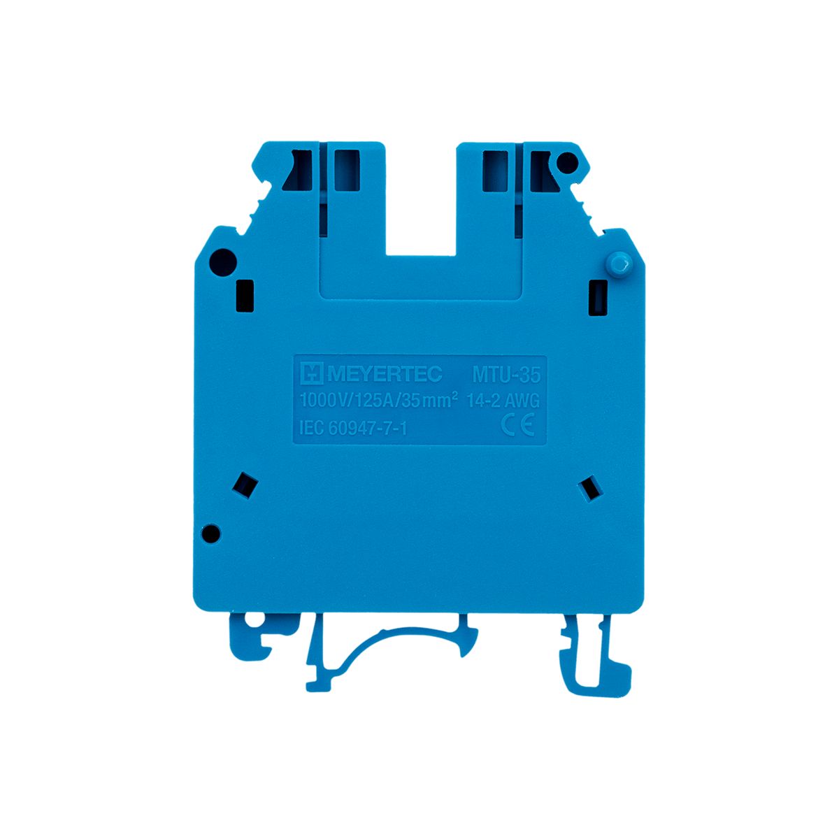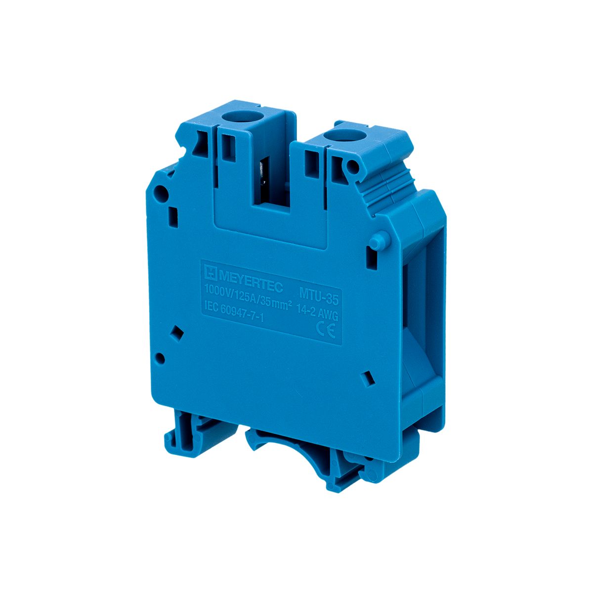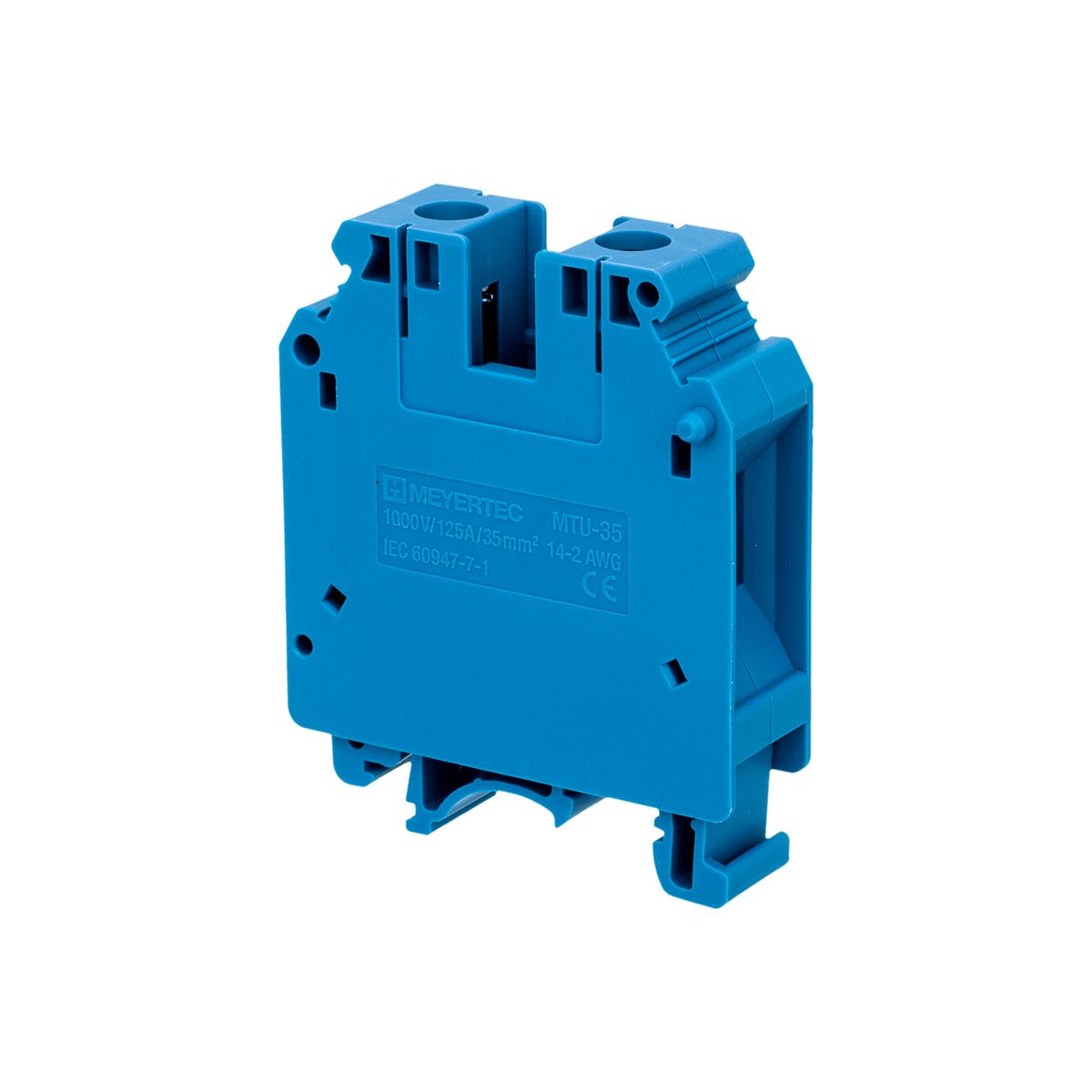 Проходные винтовые клеммы MTU-35BL предназначены для подключения проводников сечением 35 мм² при вводе в электротехнический шкаф, а также для распределения отводящих проводников (линий) внутри сборочного шкафа (щита). Встроенные винтовые зажимы позволяют достичь надёжного контакта для передачи электроэнергии.