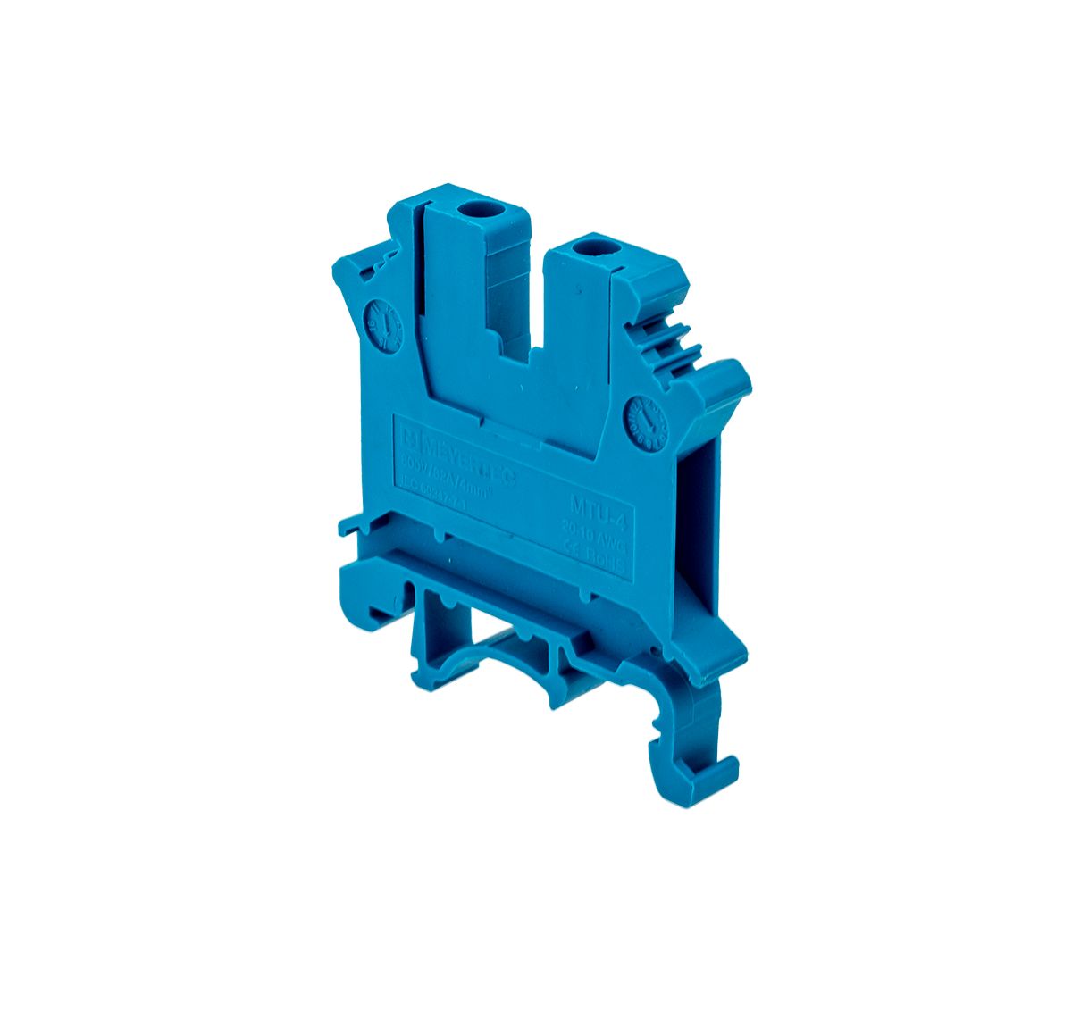 Одноуровневые винтовые клеммы MTU-4BL – простой и удобный способ подключения устройств в шкафах автоматики. Клеммы MTU-4 предназначены для проводников сечением 4мм2. Открытую токопроводящую часть клеммного ряда необходимо закрыть торцевой заглушкой. Одноуровневые клеммы имеют одинаковые габаритные размеры для всех сечений, кроме ширины, которая зависит от сечения выбираемого проводника.