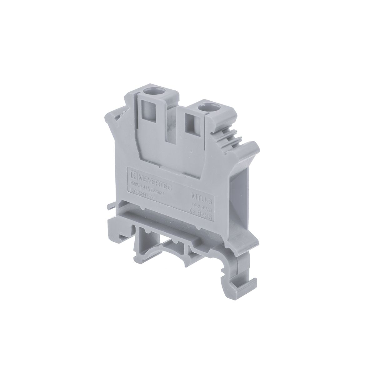 Одноуровневые винтовые клеммы MTU-6 – простой и удобный способ подключения устройств в шкафах автоматики. Клеммы MTU-6 предназначены для проводников сечением 6мм2. Открытую токопроводящую часть клеммного ряда необходимо закрыть торцевой заглушкой. Одноуровневые клеммы имеют одинаковые габаритные размеры для всех сечений, кроме ширины, которая зависит от сечения выбираемого проводника.