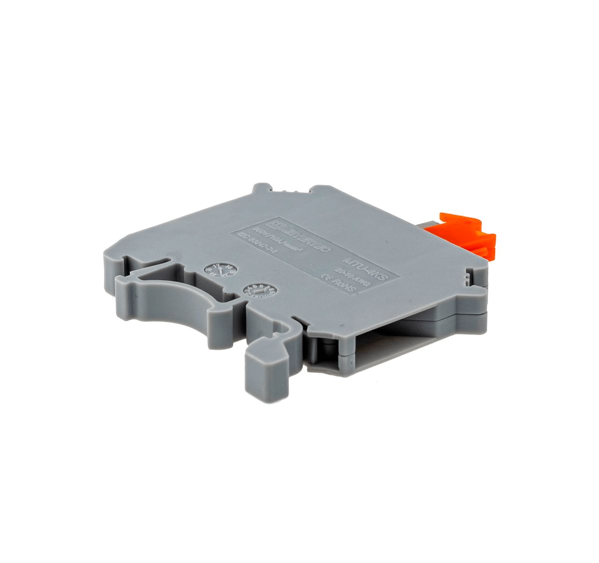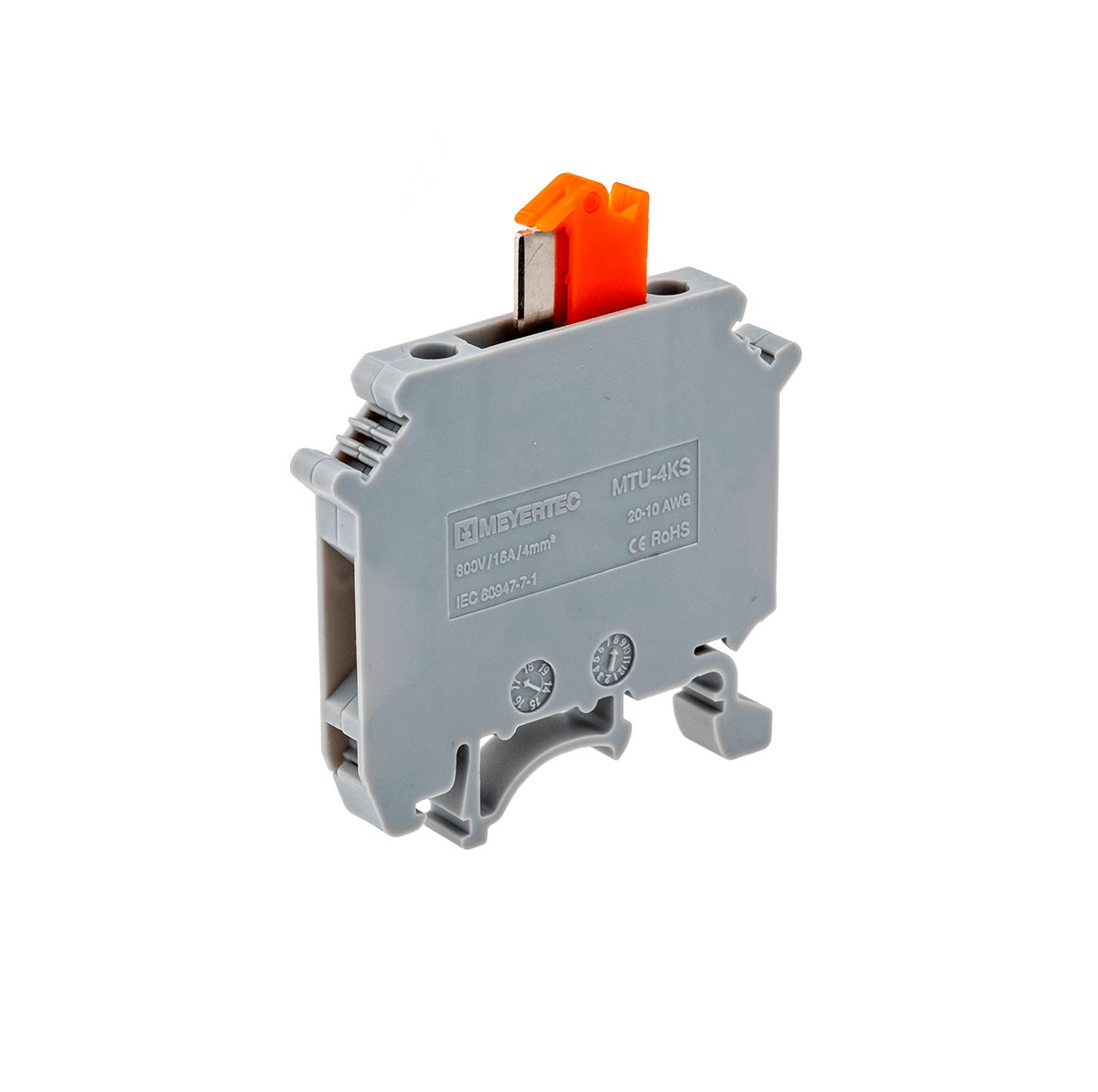 Клеммы MTU-4KS с ножевым размыкателем применяются в цепях для оперативного и безопасного отключения нагрузки во время отладки или измерений. Не требуется отключение проводников, достаточно поднять рычаг размыкателя. Токоведущая часть клемм закрыта с двух сторон, применение заглушек не требуется.