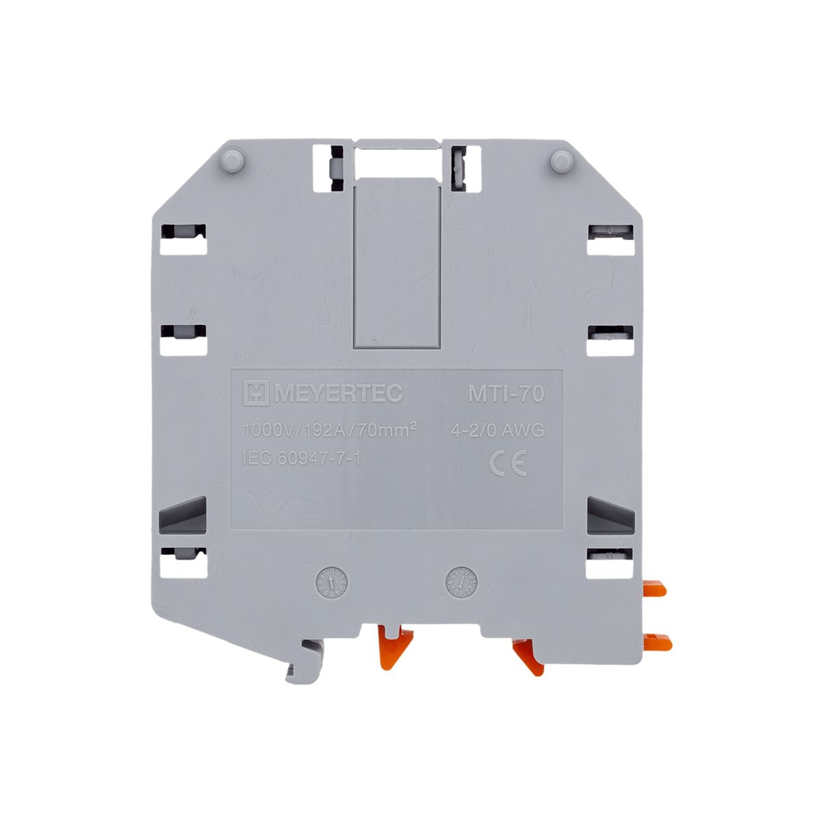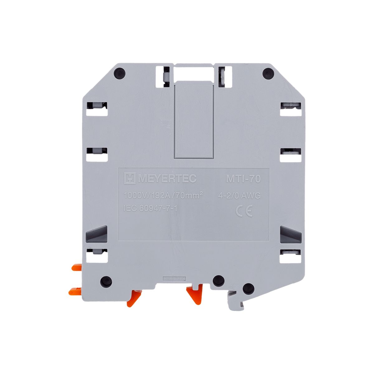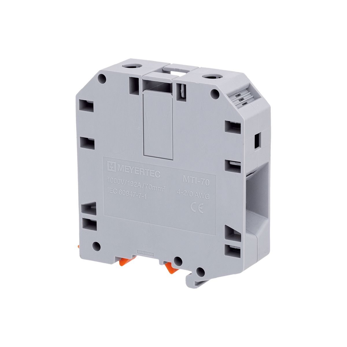 Силовые клеммы MTI-70 предназначены для подключения проводников большого сечения при вводе в электротехнический шкаф, а также для распределения отводящих проводников (линий, фаз) внутри сборочного шкафа (щита). Встроенные винтовые зажимы позволяют достичь надёжного контакта для передачи электроэнергии.