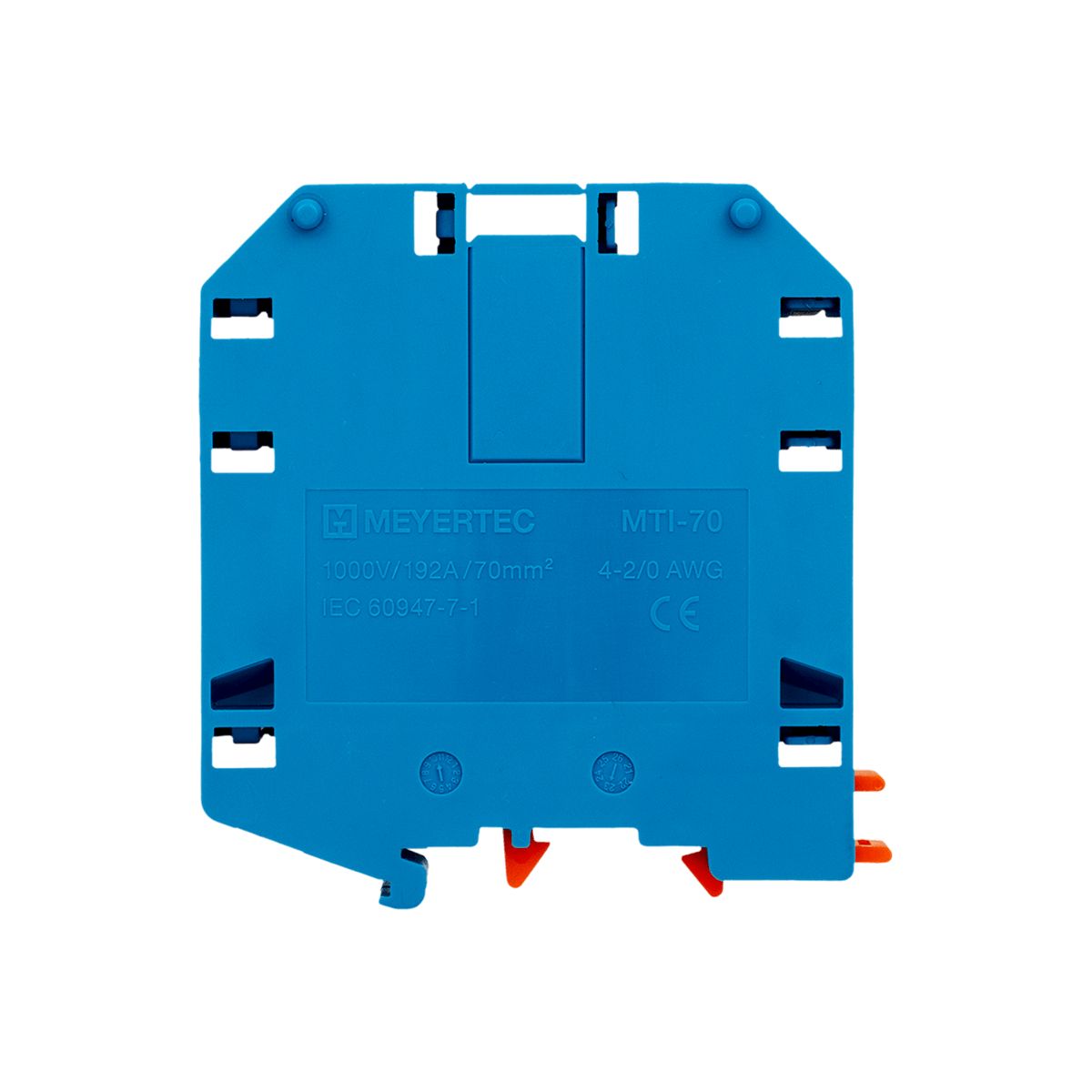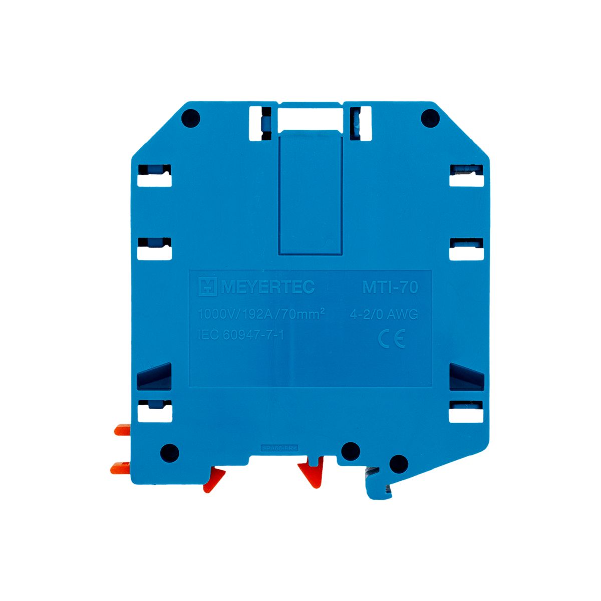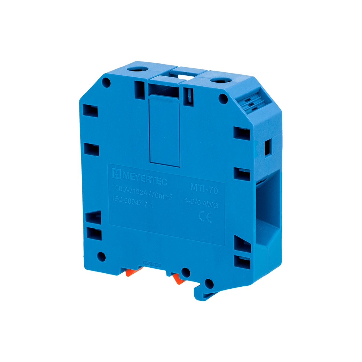 Силовые клеммы MTI-70BL предназначены для подключения проводников большого сечения при вводе в электротехнический шкаф, а также для распределения отводящих проводников (линий) внутри сборочного шкафа (щита). Встроенные винтовые зажимы позволяют достичь надёжного контакта для передачи электроэнергии.