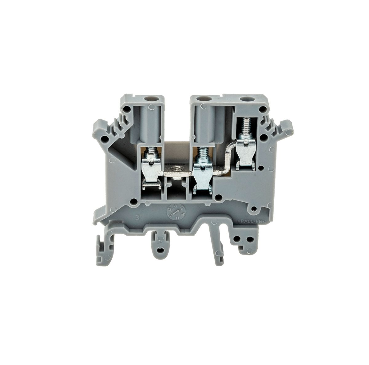 Трехпроводные винтовые клеммы MTU-TO4 применяются для разветвления токовых цепей. Данный тип удобен, когда к одной клемме необходимо подключить несколько проводников. В отличие от многоуровневых клемм данные клеммы имеют единую токопроводящую шину на 3 присоединения.