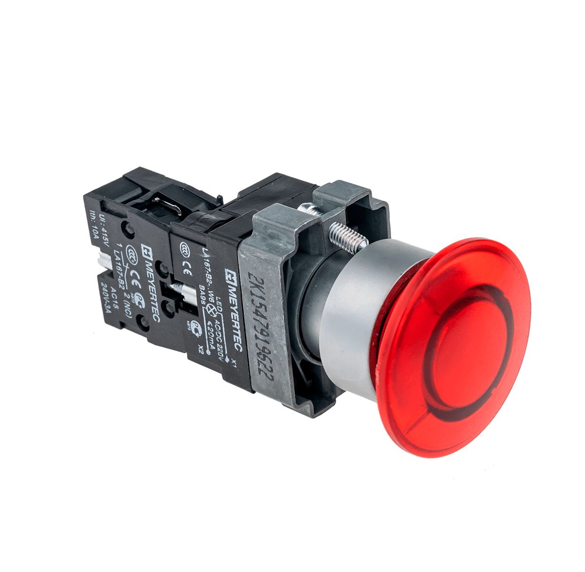 Кнопка грибовидная без фиксации, с подсветкой, 24V, 1NC, красный