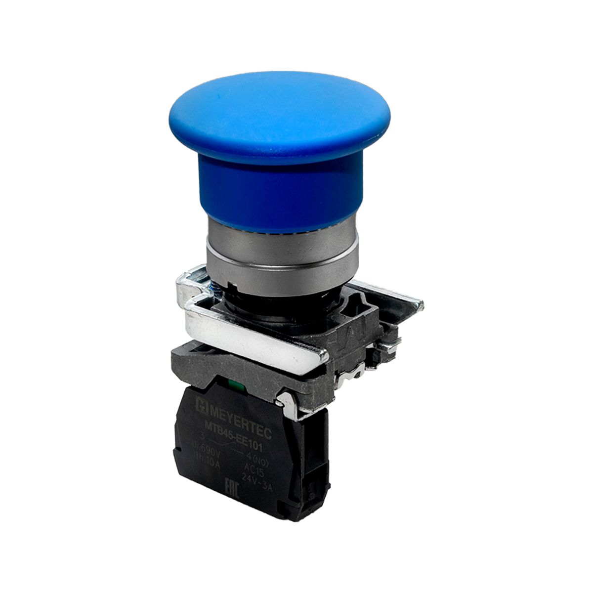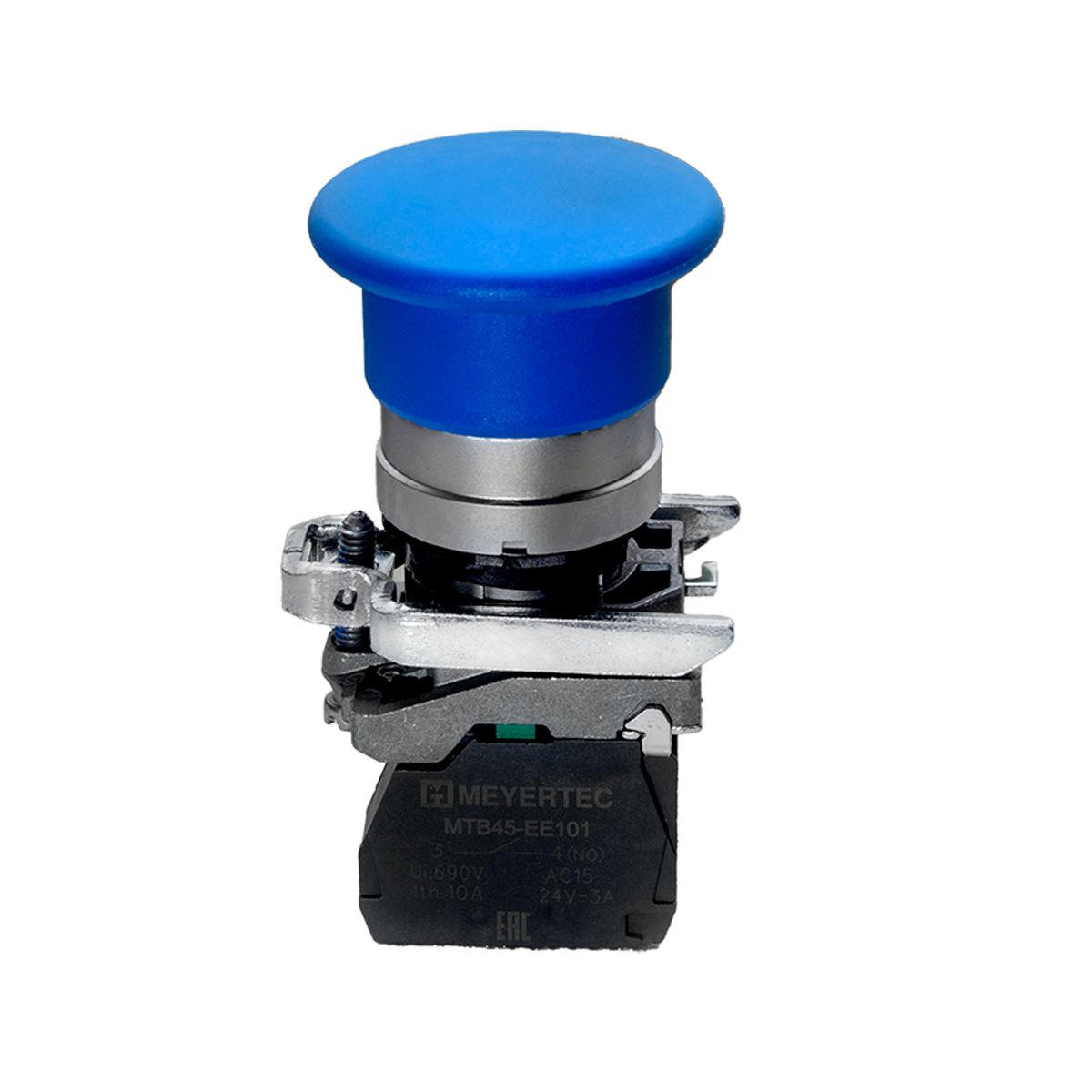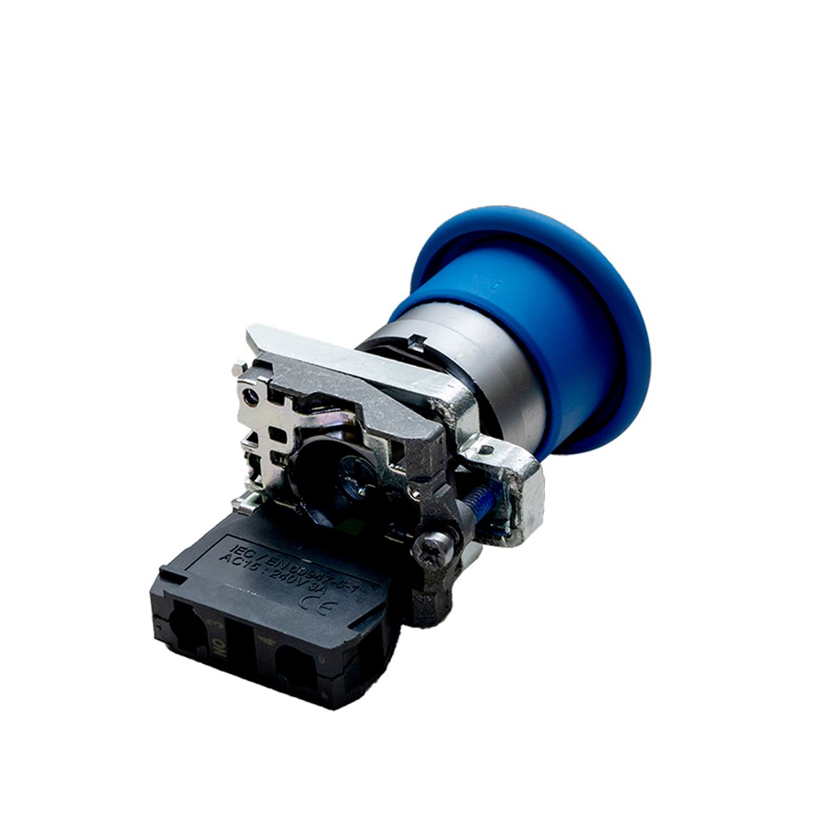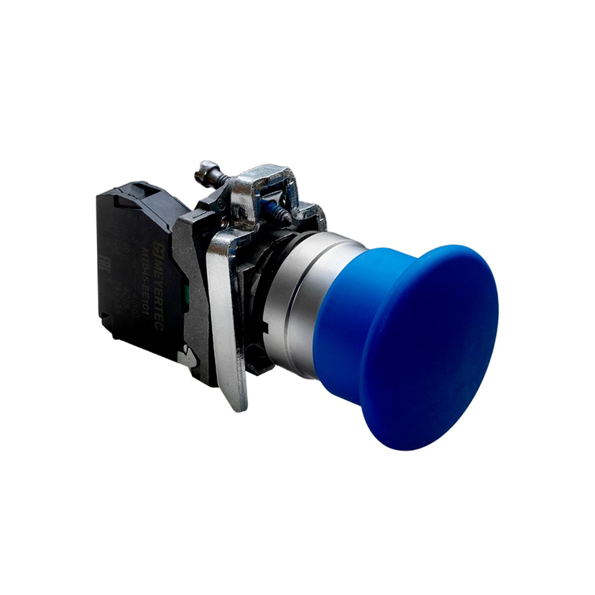 Кнопка грибовидная синяя, 40 мм, пружиный возврат, 1NO, IP65, металл