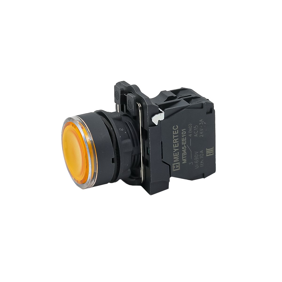 Кнопка желтая с подсветкой, 1NO, 220V AC/DC, IP65, пластик