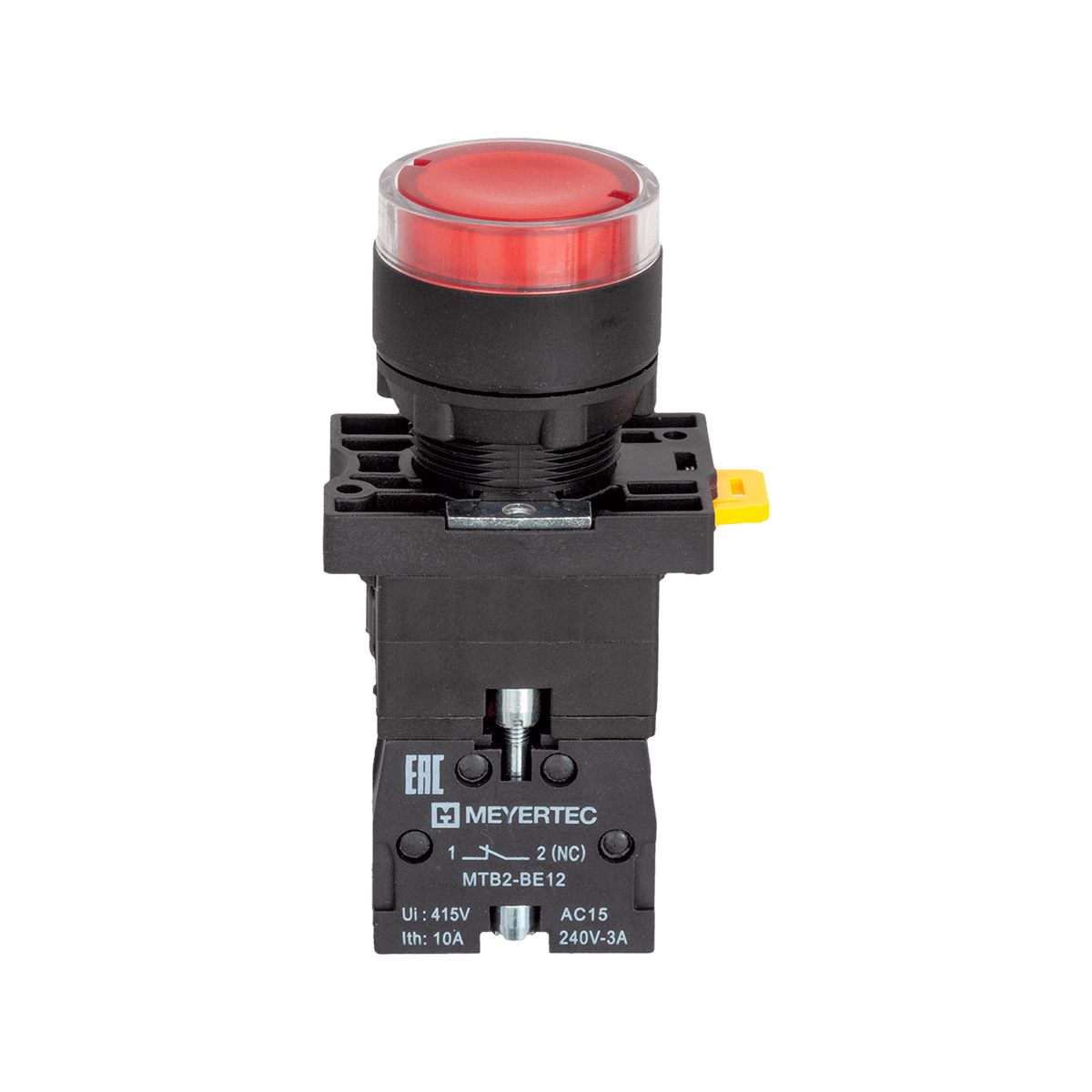 Кнопка красная с подсветкой, 1NС, 220V AC/DC, IP54, пластик