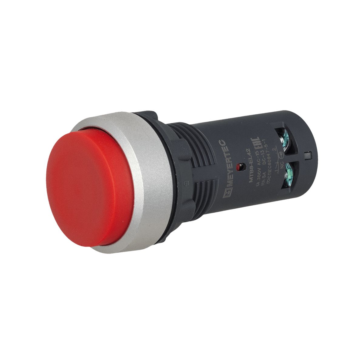 Кнопка красная выступающая, с возвратом, 1NC, IP65, пластик
