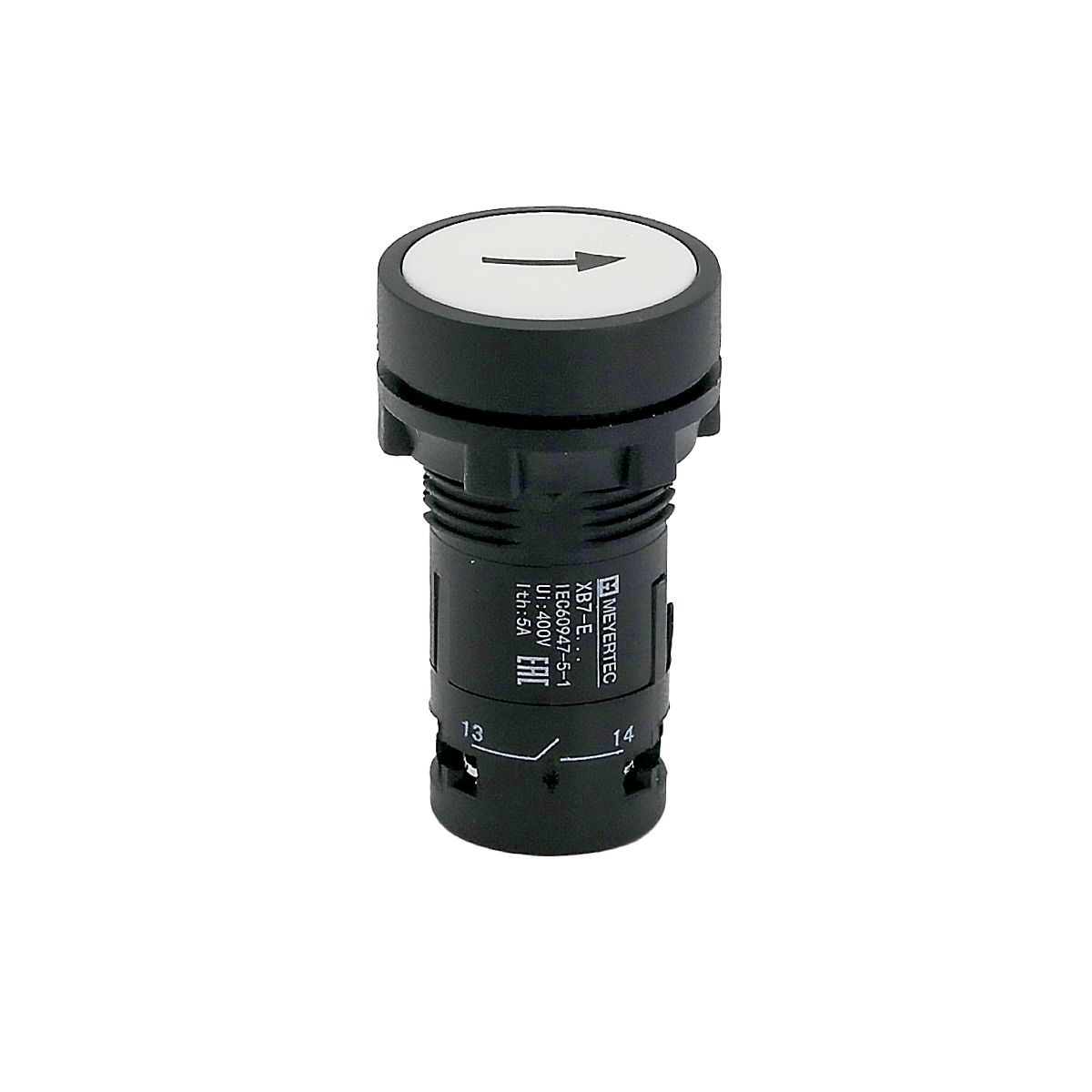 Кнопка плоская белая, маркировка "стрелка вверх", 1NO, IP54, пластик