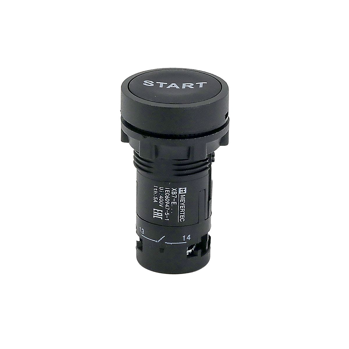 Кнопка плоская черная, маркировка "START", 1NO, IP54, пластик