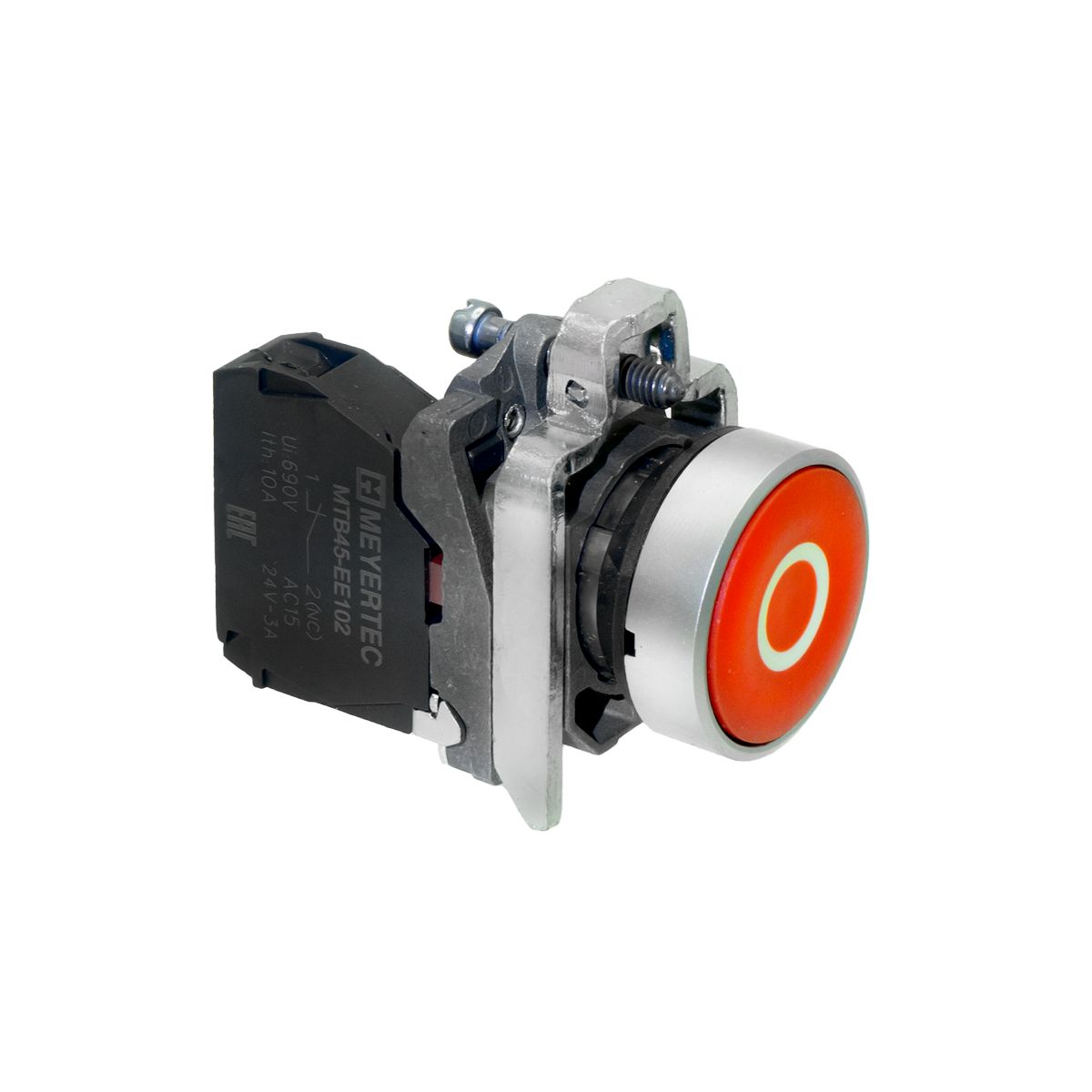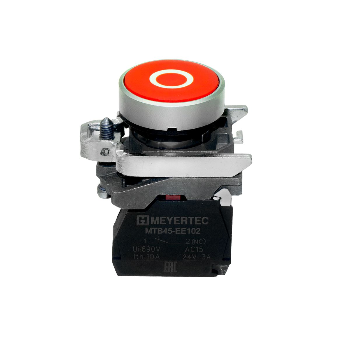 Кнопка плоская красная, маркировка "O", 1NС, IP65, металл