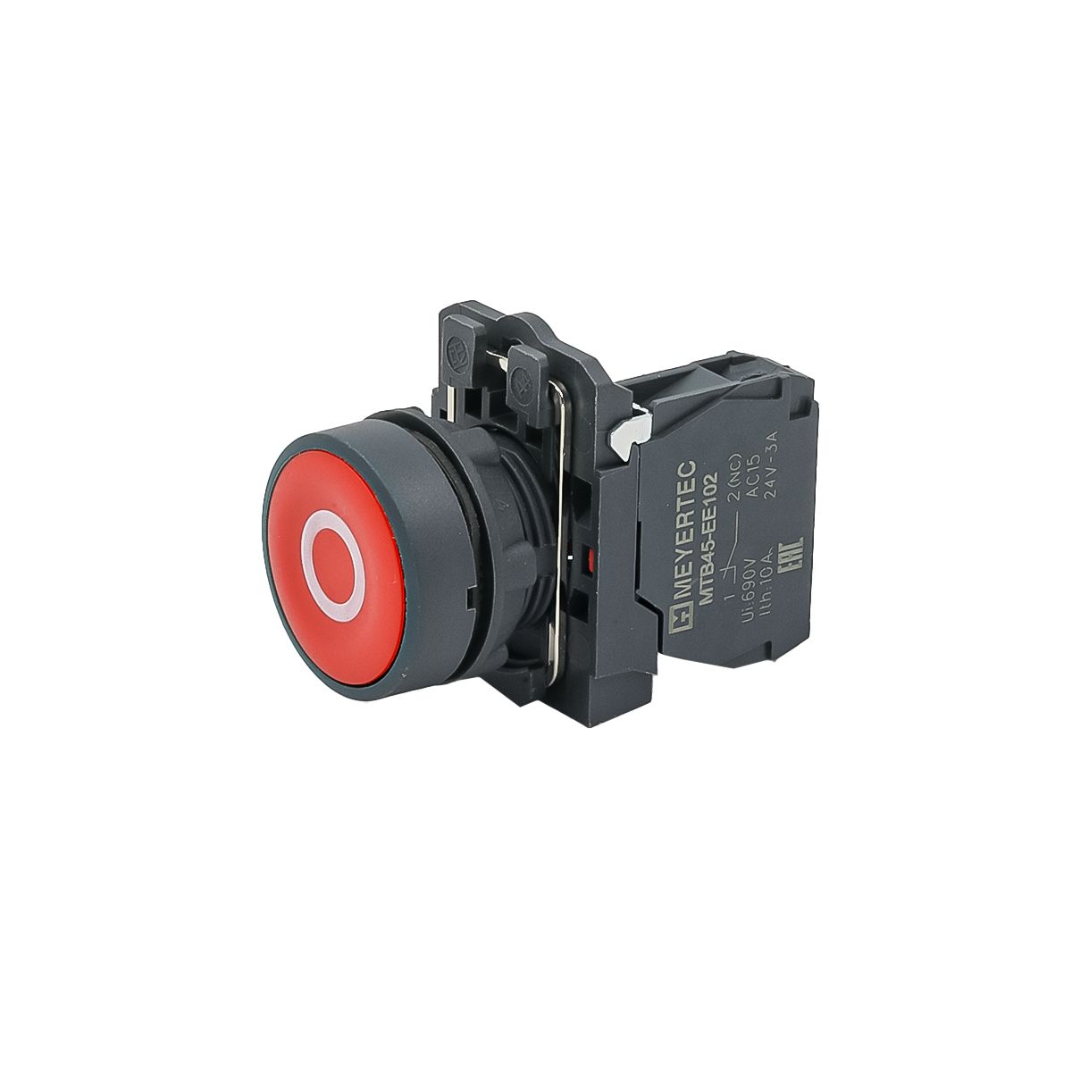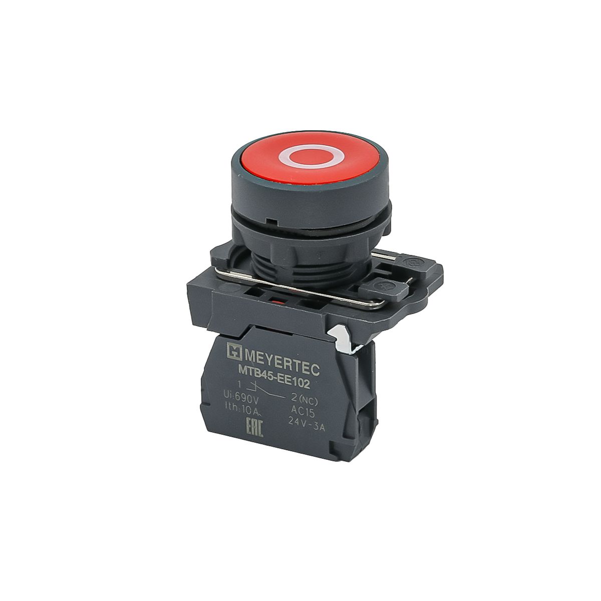 Кнопка плоская красная, маркировка "O", 1NС, IP65, пластик