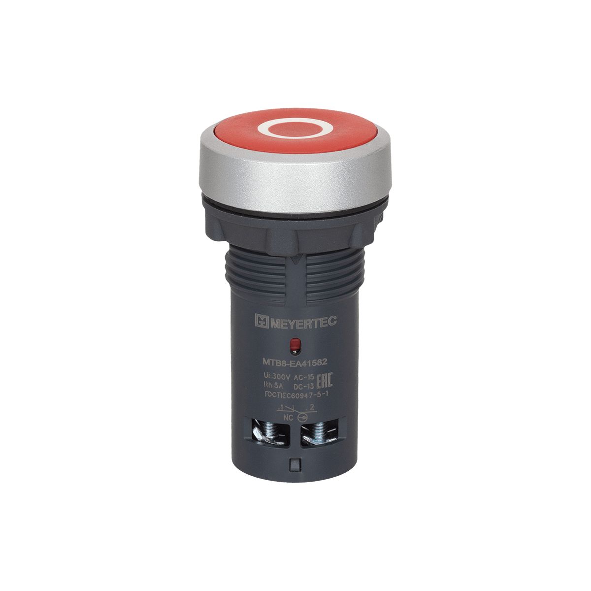 Кнопка плоская красная, маркировка "O", 1NС, IP65, пластик