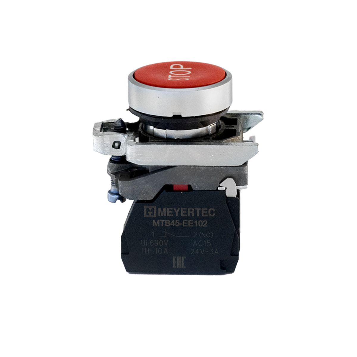 Кнопка плоская красная, маркировка "STOP", 1NС, IP65, металл