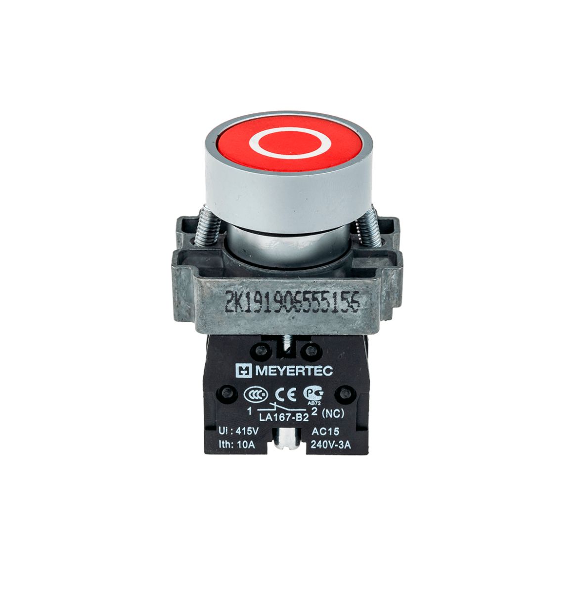 Кнопка плоская, маркировка "О", 1NC, металл