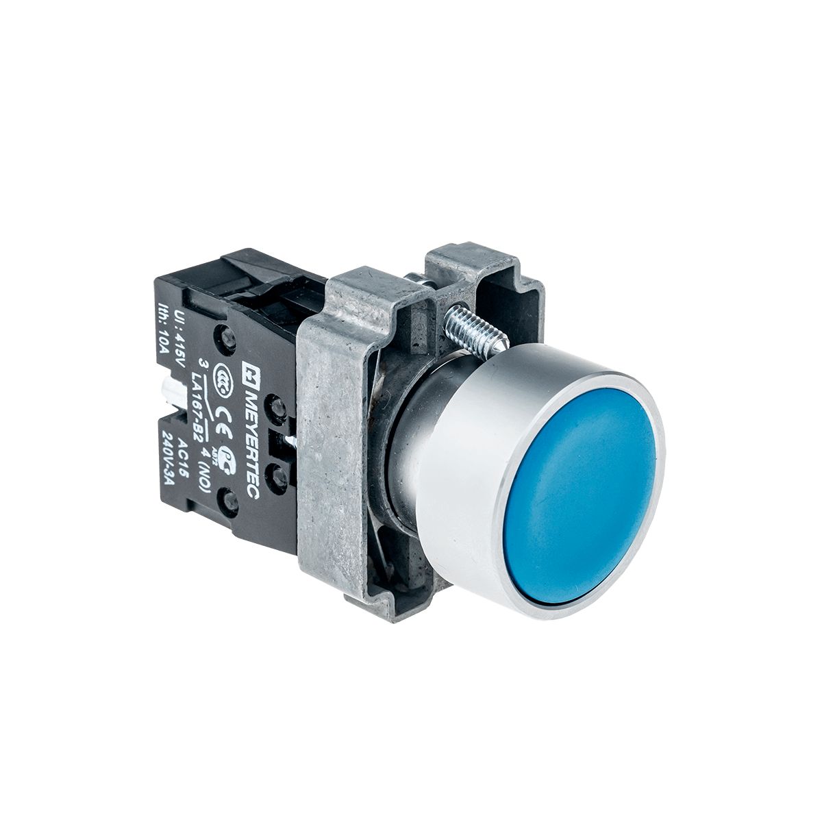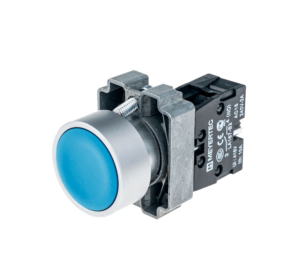Кнопка плоская синяя, 1NO, металл