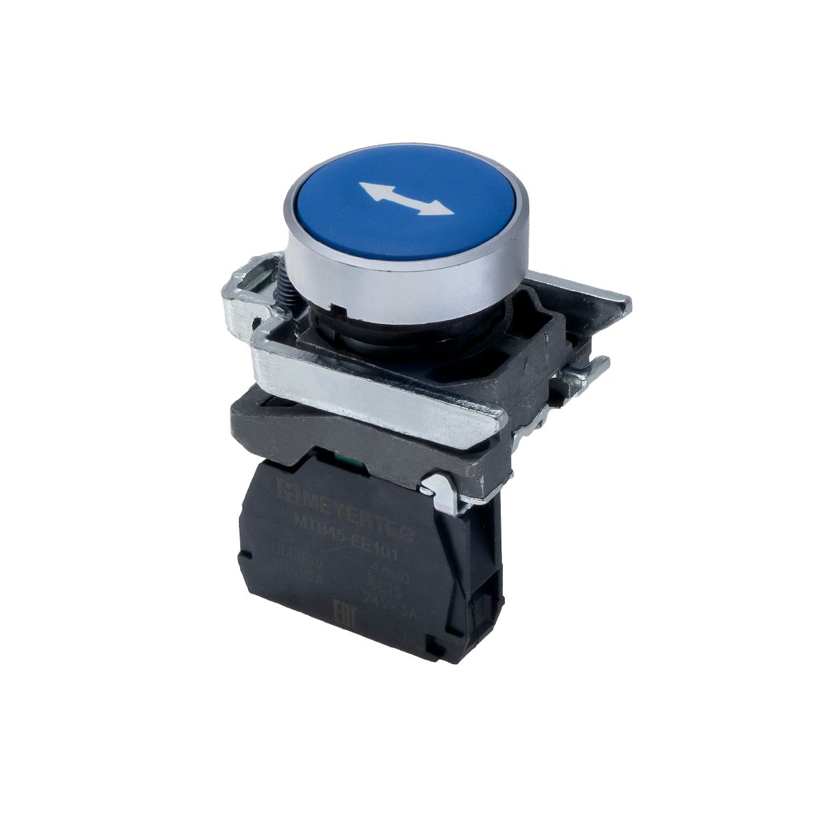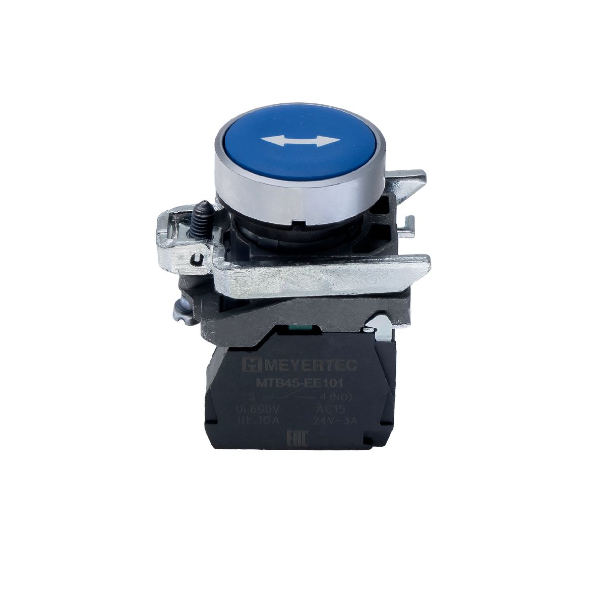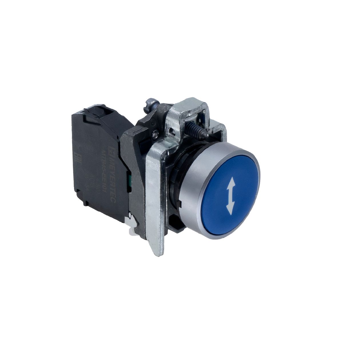 Кнопка плоская синяя, маркировка "стрелка влево-вправо", 1NO, IP65, металл