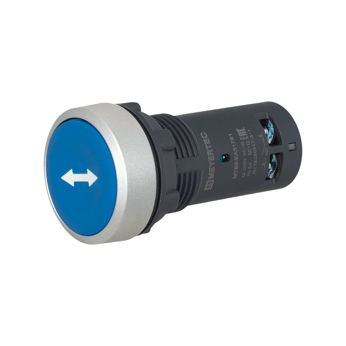 Кнопка плоская синяя, маркировка "стрелка влево-вправо", 1NO, IP65, пластик