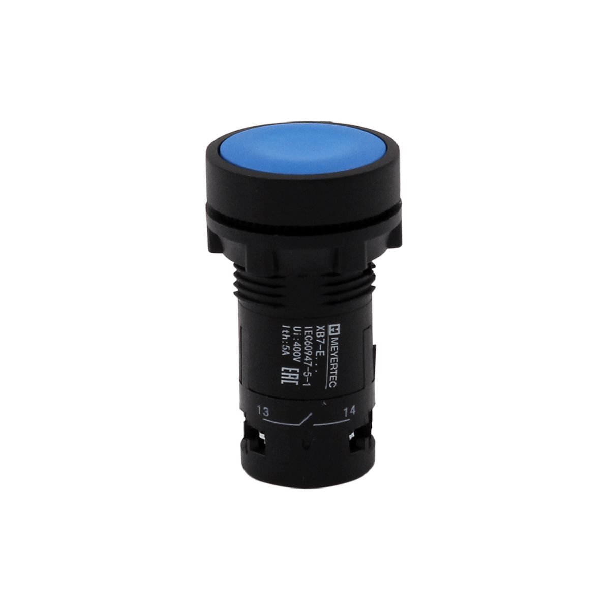 Кнопка плоская синяя с фиксацией, 1NO+1NC, IP54, пластик