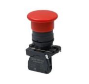 Кнопка грибовидная красная с подсветкой, Ø40 мм, 1NC, 24V AC/DC, IP54, пластик