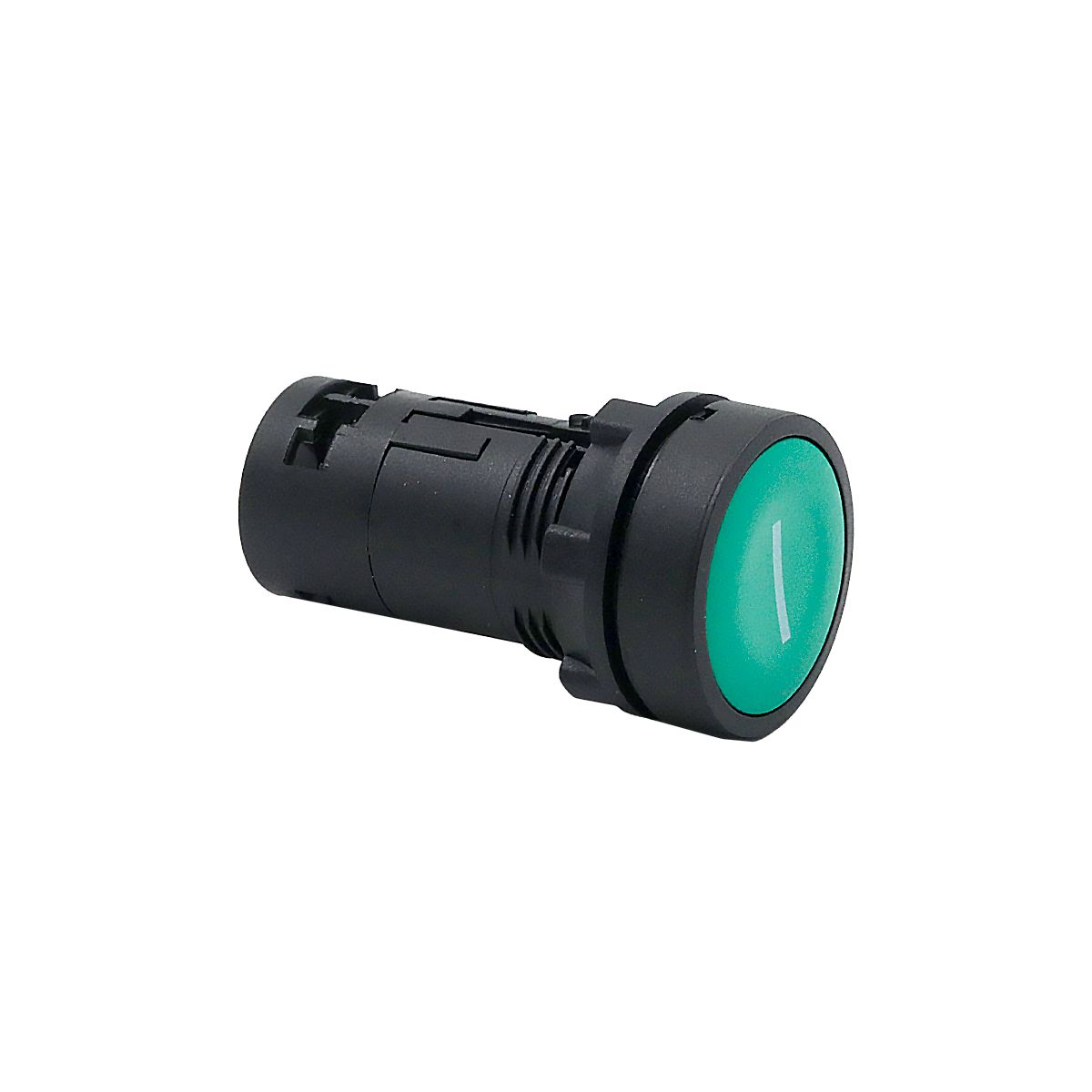 Кнопка плоская зеленая, маркировка "I", 1NO, IP54, пластик