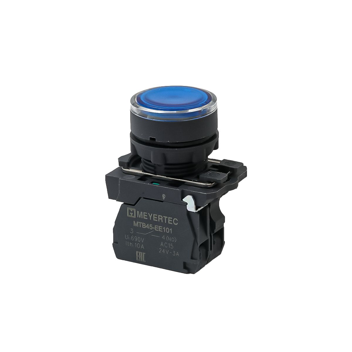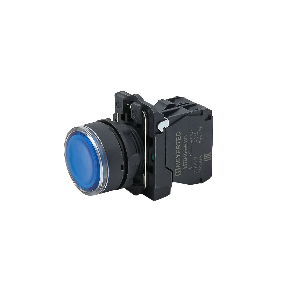 Кнопка синяя с подсветкой, 1NO, 220V AC/DC, IP65, пластик