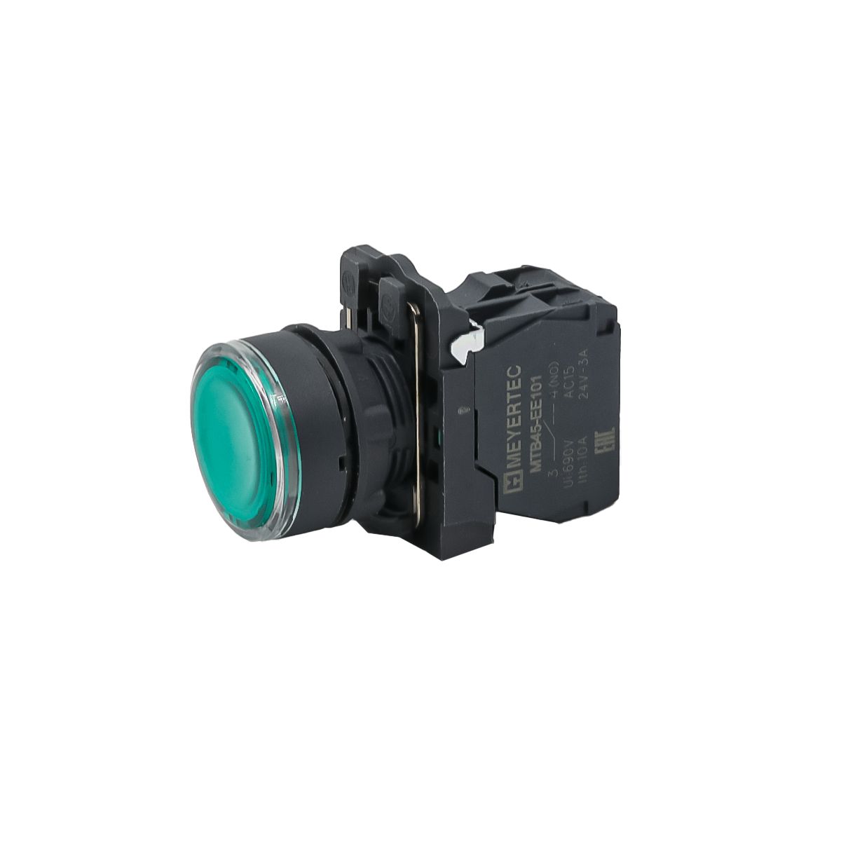 Кнопка зеленая с подсветкой, 1NO, 220V AC/DC, IP65, пластик