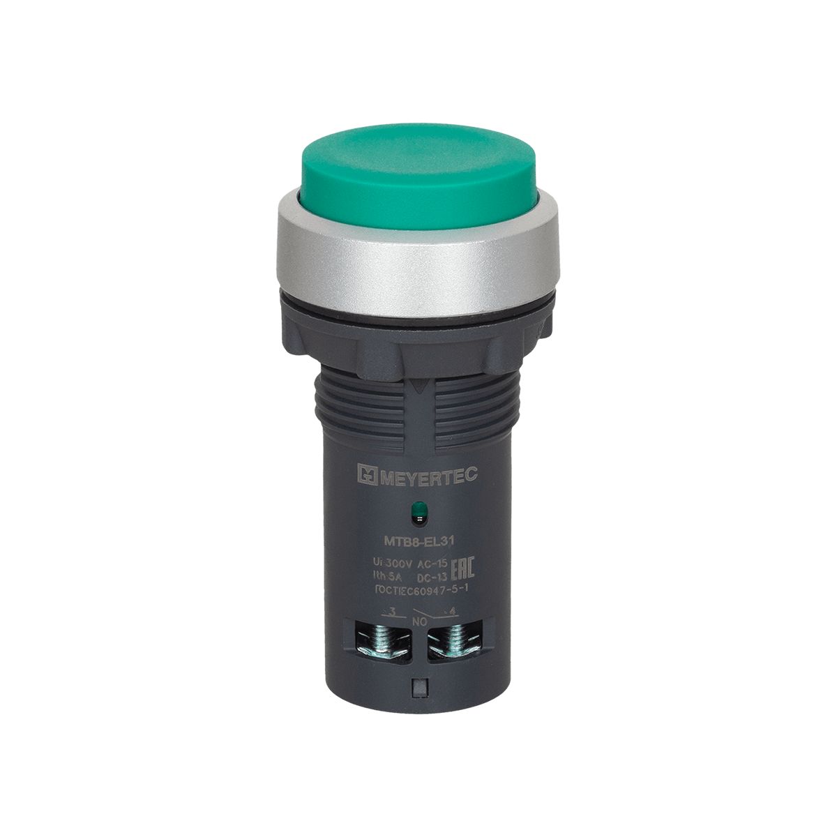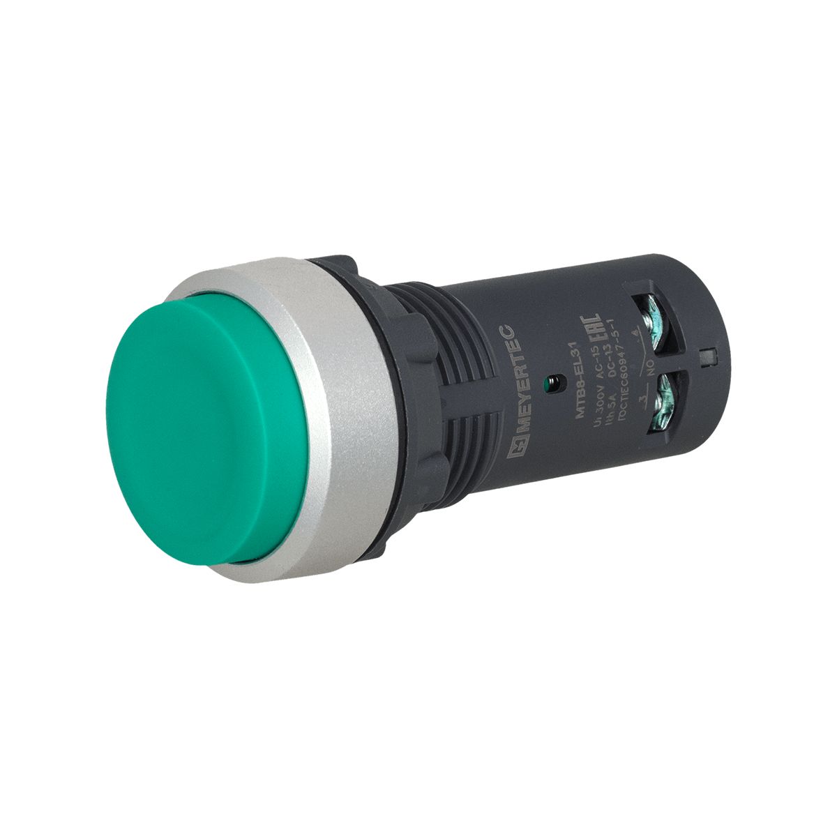 Кнопка зеленая выступающая, с возвратом, 1NO, IP65, пластик