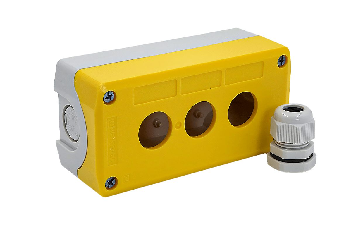 Корпус кнопочного поста, 3 места, желтый, IP67