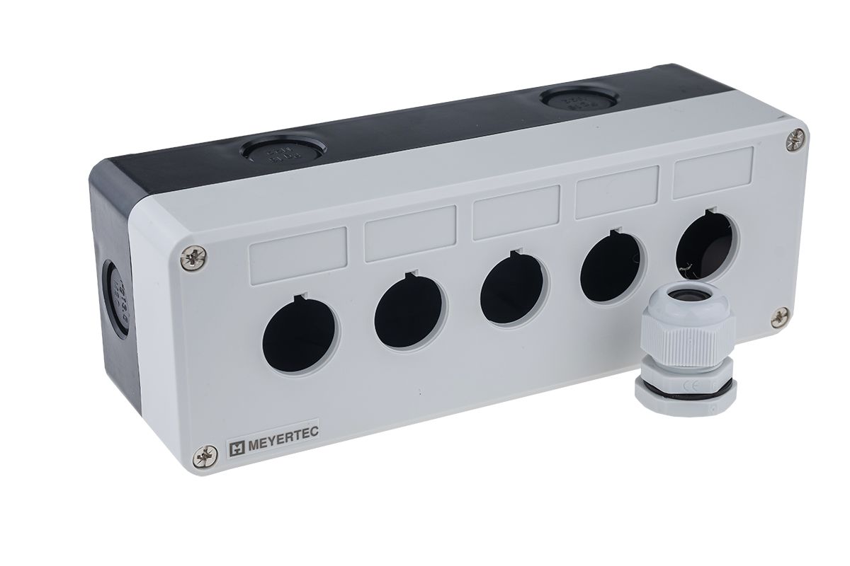 Корпус кнопочного поста, 5 отверстий, серый, IP54