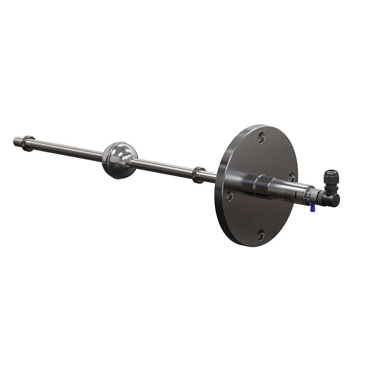 Поплавок с постоянным магнитом перемещается вместе с уровнем жидкости по штоку, в котором находится матрица герконов и сопротивлений. Под воздействием магнитного поля происходит срабатывание герконов, цепь работает по схеме трёхпроводного потенциометра. При изменении уровня жидкости прямо пропорционально изменяется выходное сопротивление датчика, преобразуемое в цифровой код для передачи данных по сети RS-485 (протокол Modbus RTU).