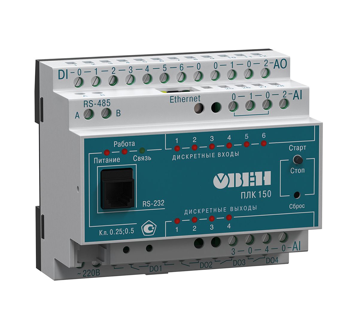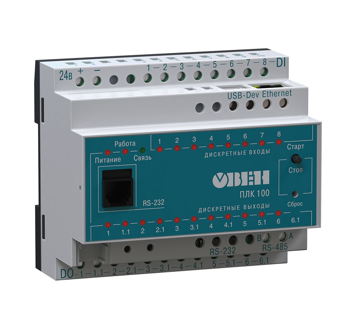 ОВЕН ПЛК100/150/154 – моноблочные контроллеры для малых и средних систем автоматизации со встроенными дискретными и аналоговыми входами/выходами.