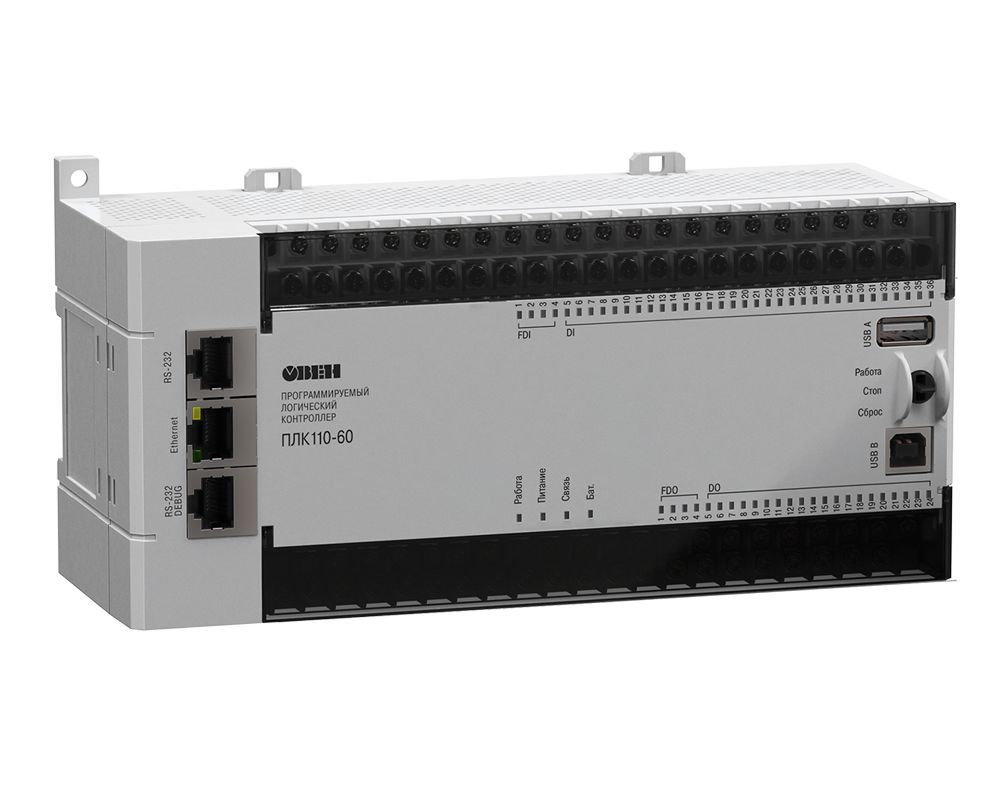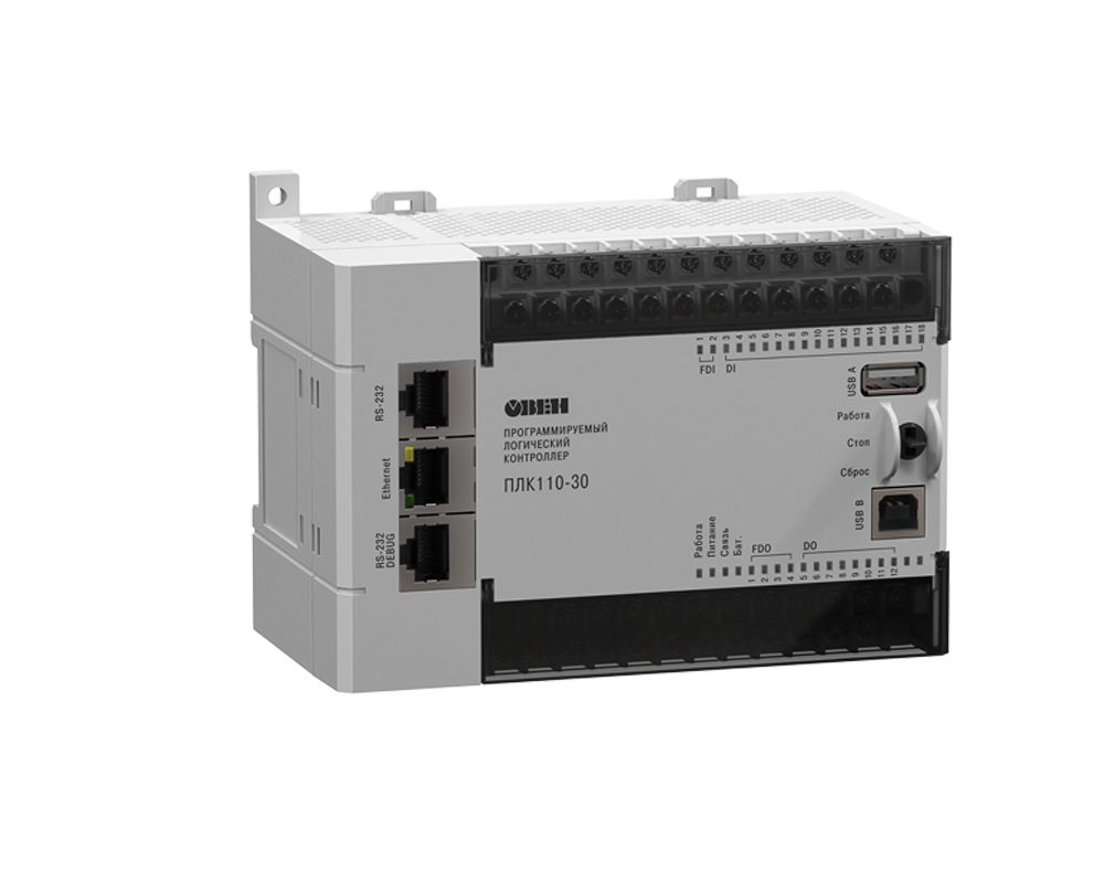 ОВЕН ПЛК110[М02] – линейка программируемых моноблочных контроллеров с дискретными входами/выходами на борту для автоматизации средних систем.