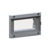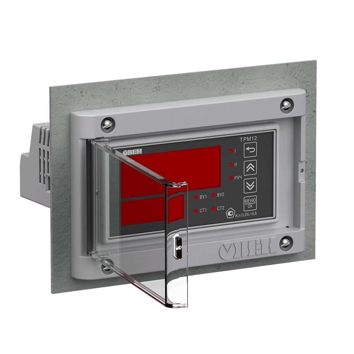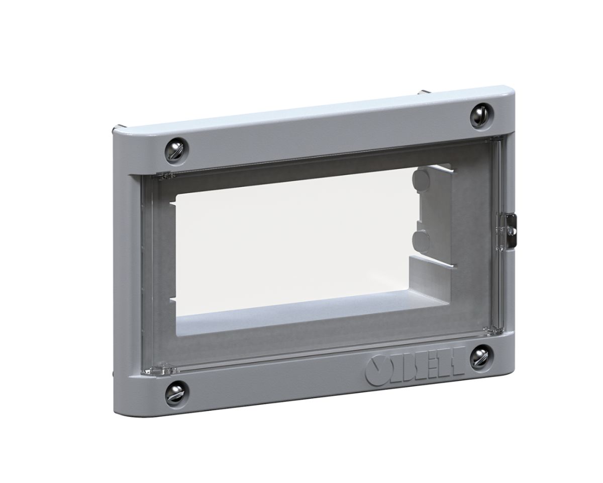 Конструкция рамки содержит прозрачную дверцу, которая может открываться на угол до 100 градусов и фиксироваться в открытом положении. Прозрачная дверца осуществляет дополнительную защиту приборов от внешних механических воздействий, значительно увеличивает срок службы гибко-пленочной клавиатуры прибора. В конструкции рамки имеются встроенные крепежи для установки прибора.