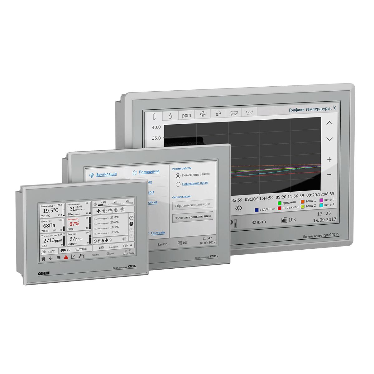 ОВЕН СП3хх – линейка сенсорных панелей оператора. Предназначена для наглядного отображения значений параметров и оперативного управления, а также ведения архива событий или значений. Конфигурирование СП3хх осуществляется в среде «Конфигуратор СП300». Рекомендуется для совместного применения с ОВЕН ПЛК, ПР, ПЧВ, ТРМ. Линейка СП3хх заменяет панель оператора СП270 (полным аналогом СП270 с улучшенными характеристиками является панель СП307-Б). Проекты, разработанные для СП270, могут быть загружены в СП3хх после импорта в новое ПО.