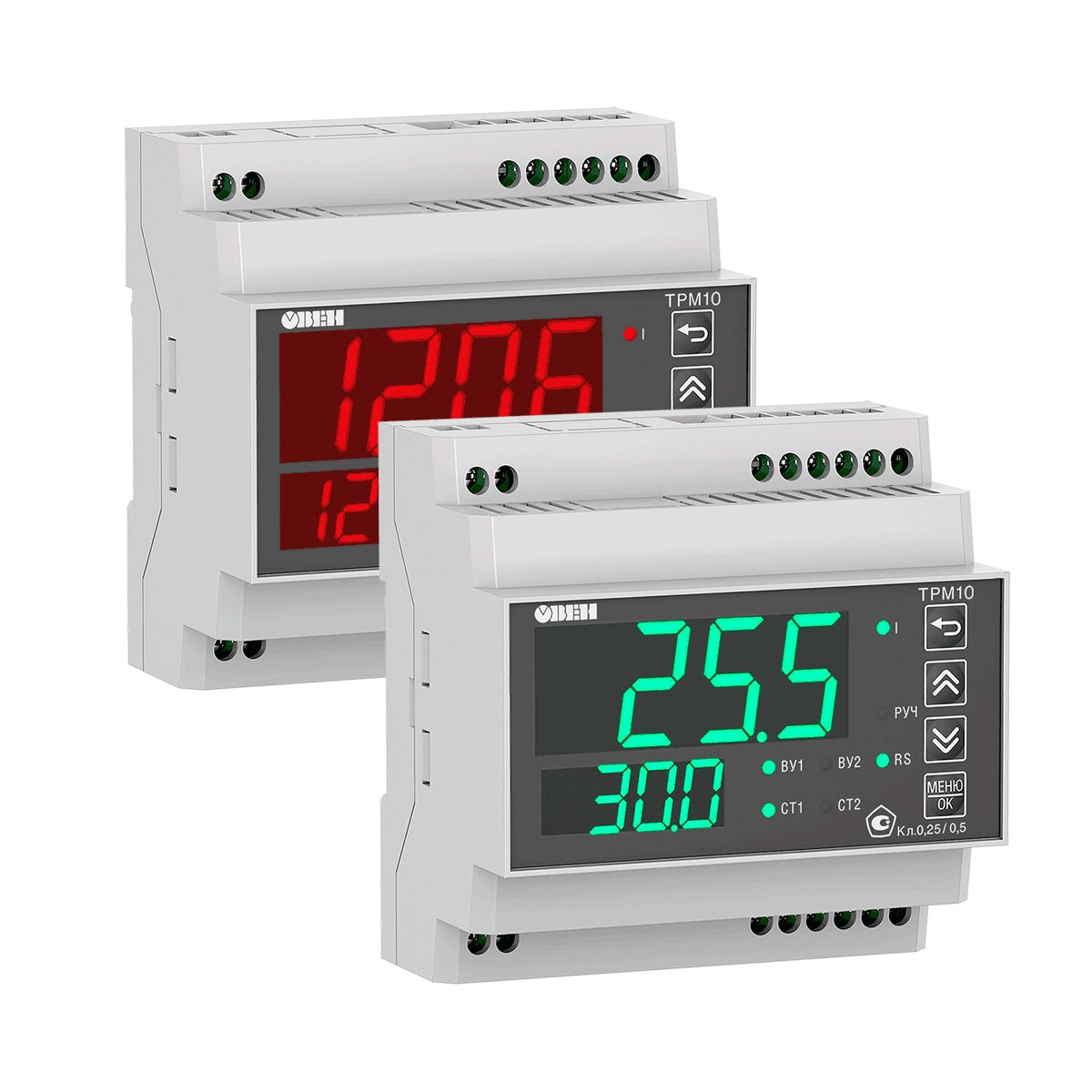 ТРМ10 – это ПИД-регулятор температуры, давления, уровня, влажности, концентрации вещества, расхода или других физических величин в различных технологических процессах. Главная особенность ТРМ10 – это алгоритм ПИД-регулятора, предназначенный для точного поддержания заданных параметров до ±0,2 ˚С методом ШИМ-регулирования или плавного изменения унифицированного выходного сигнала. Наличие сетевого интерфейса RS-485 позволяет производить удаленную настройку и управление прибором.