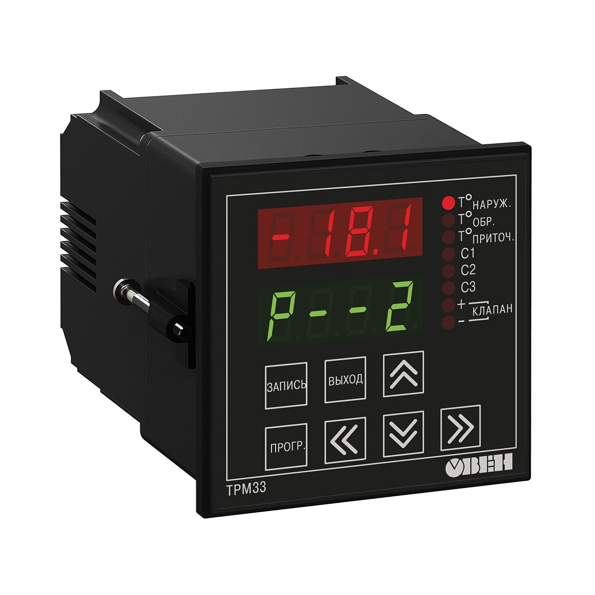 Прибор ОВЕН ТРМ33 предназначен для регулирования температуры воздуха в помещениях, оборудованных системой приточной вентиляции с водяным калорифером.